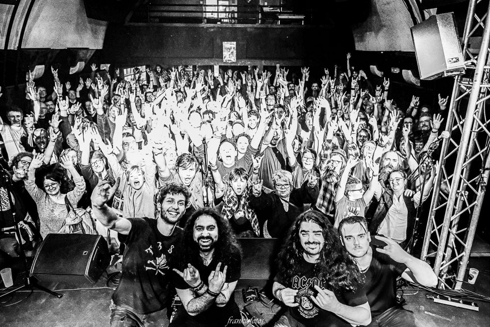 Il est environ 10h15 quand nos quatre jeunes poilus arrivent sur scène. La Poudrière est pleine et c’est parti pour un Rock’n Roll Show de 2 heures, bourré d’énergie, de riff et solos de guitare de feu et une audience survoltée. Tous les âges sont présents, je vois des minots de 10 ans à peine et me dis que le rock reste et demeure la musique de toutes les générations. Croyez-moi, Rock’n roll is not dead…