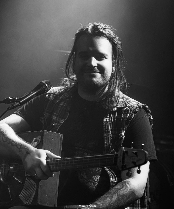 Il est 21h00 quand Fat Jeff s’installe sur sa chaise, Gros tome au pied, entouré de ses guitares dont une magnifique DUESENBERG et autres Cigar box improbables, confectionnés par Laurent de Cigar Broc Guitare, luthier à Saint-Maurice Colombier (25).