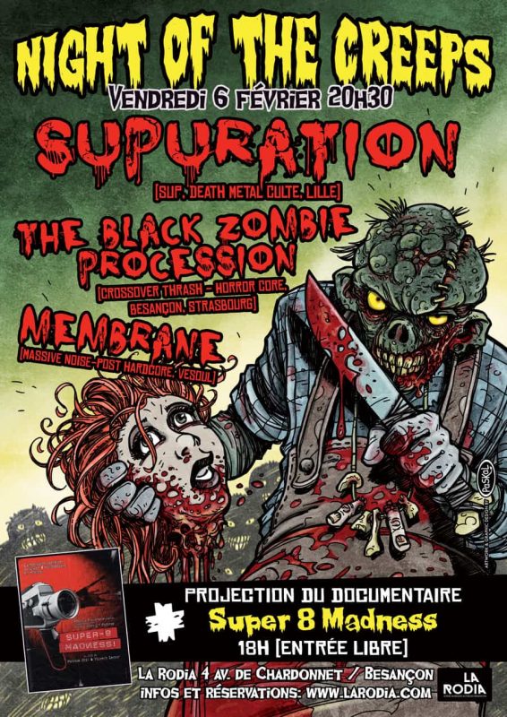 Live reports Supuration, The Black Zombie Procession, Membrane à la Rodia le 6 février 2015 Première grosse soirée Metal de 2015 à la Rodia avec ce soir, rien de moins que Supuration, légende incontestée du Death Metal Français. Baptisé Night Lire la suite » Jérôme 8 février 2015