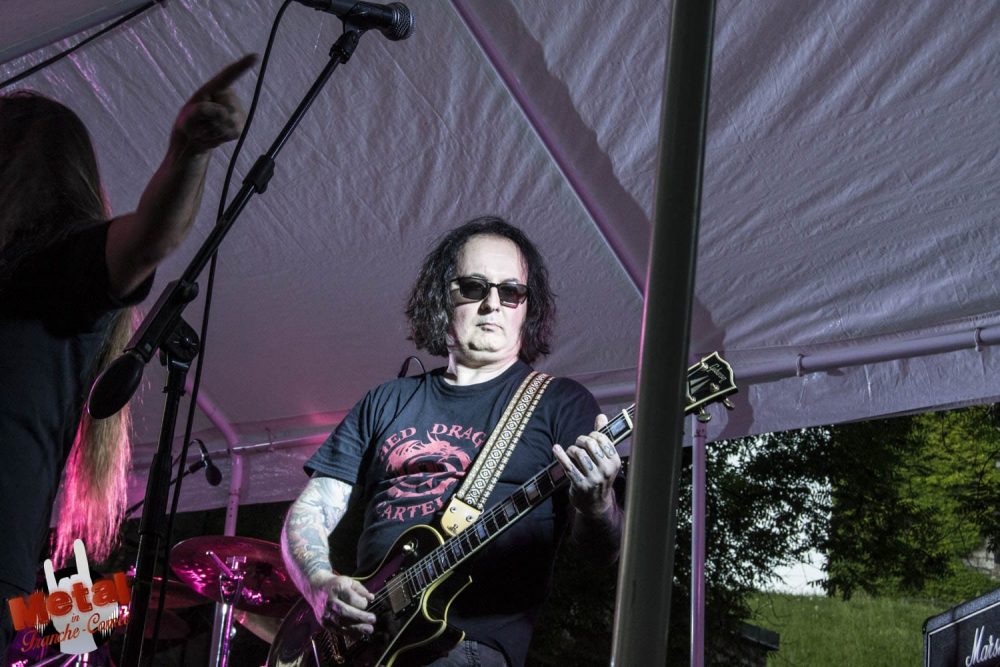 Allez, ne nous le cachons pas, je suis venu pour eux, Born Again ! Les ayant raté l’autre fois au Cultura de Besançon, impossible de ne pas venir les saluer et surtout les écouter ! Et pour un groupe récent, ceux qui le compose n’en sont pas à leur premier coup. Ancien de Broken Edge ils ont décidé de faire vivre le Metal comme on l’aime ! Lourd, Mélodique et entrainant ! Avec des titres venant essentiellement de « Strike with Power », Born Again fait bouger enfin le public, l’invitant à se rapprocher pour prendre sa dose de Metal ! Mes titres préférés ce soir, « Betrayed », « New generation » ! Et bien sur la reprise de « No Class » de feu Lemmy ! Et nos gars concluent cette soirée avec un hommage à Twisted Sister. C’est là que Thierry m’invite à le rejoindre pour offrir du merchandising Metal in Franche Comté, bizarre de se retrouver sur scène pour faire ça mais le public était content !