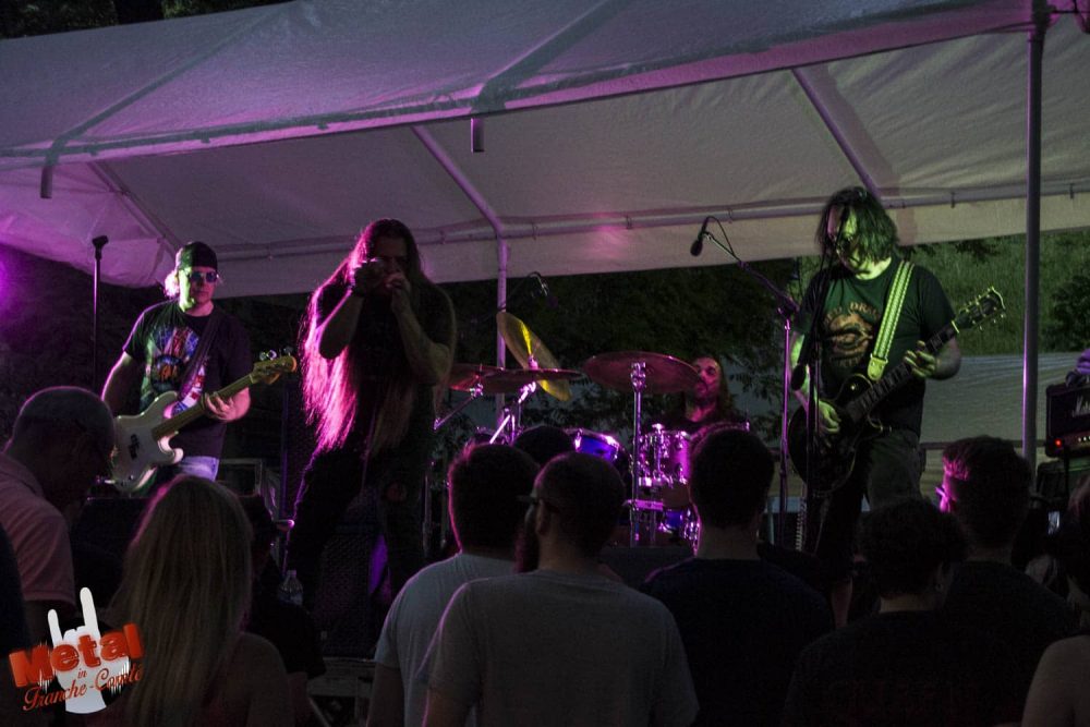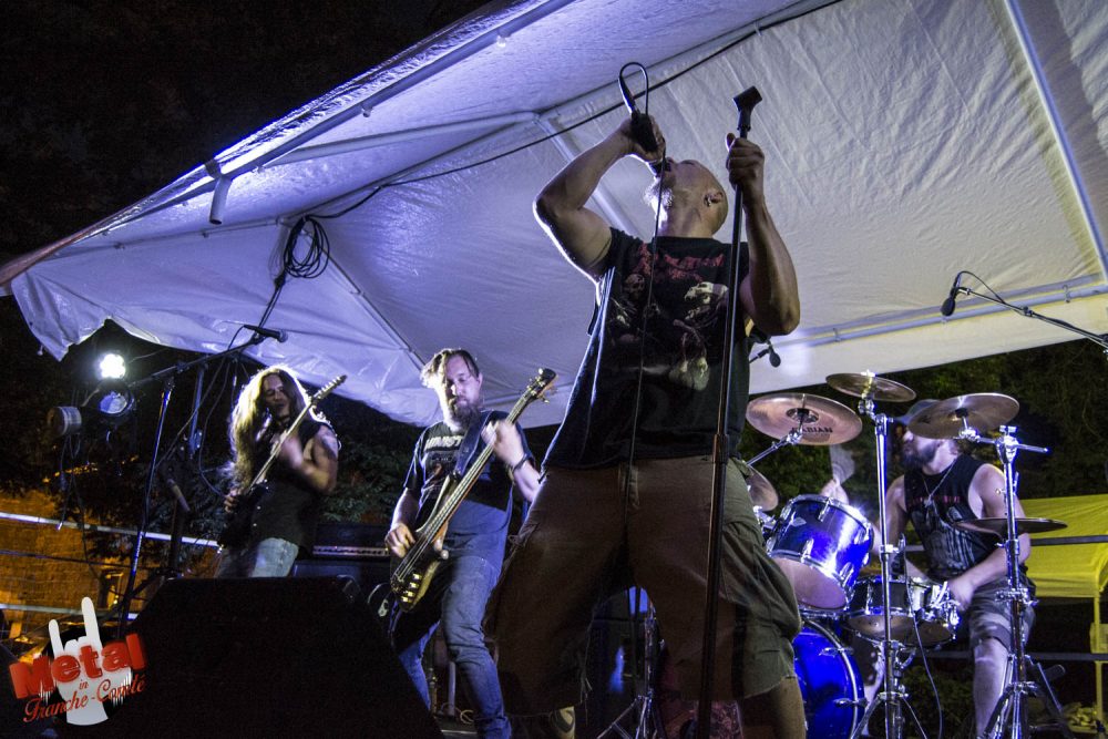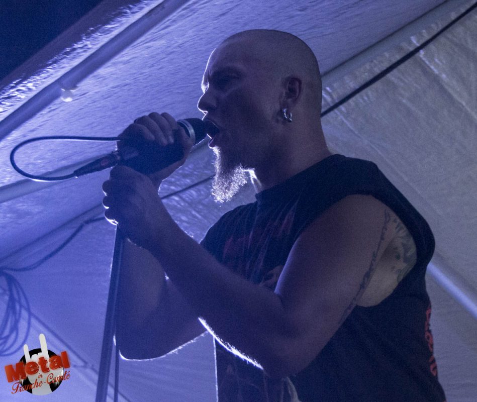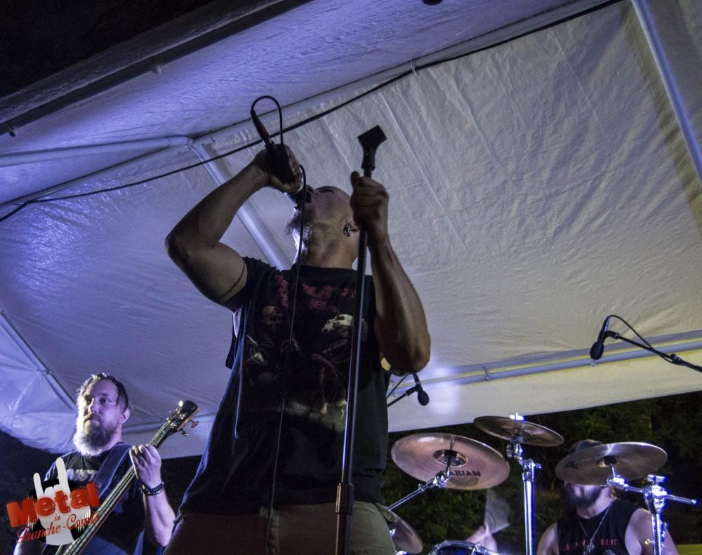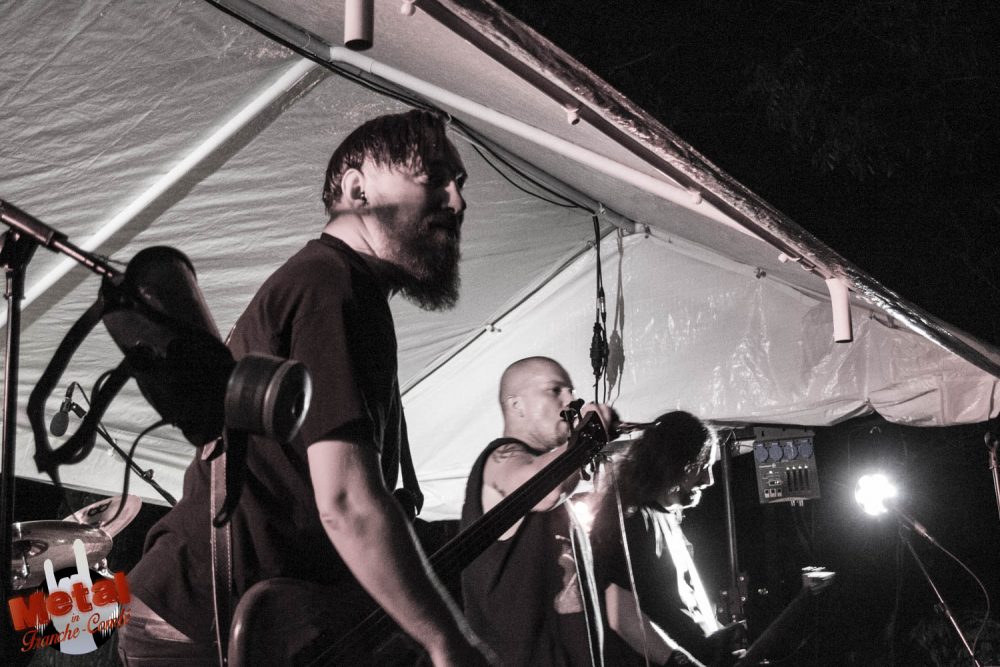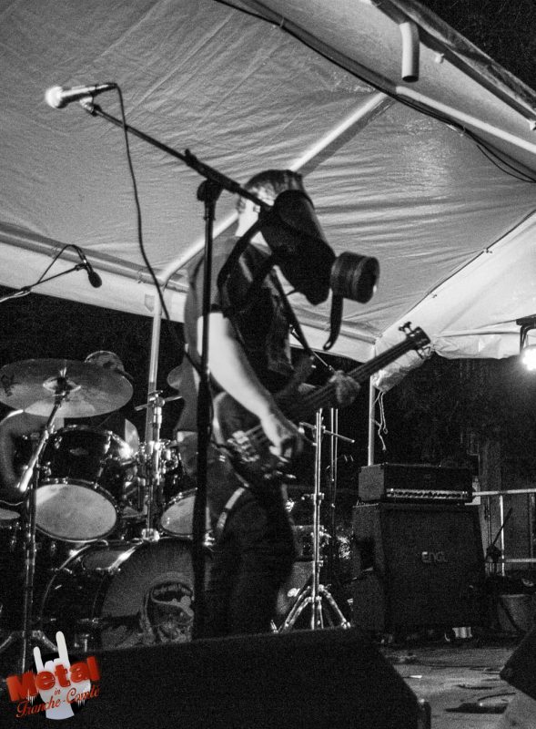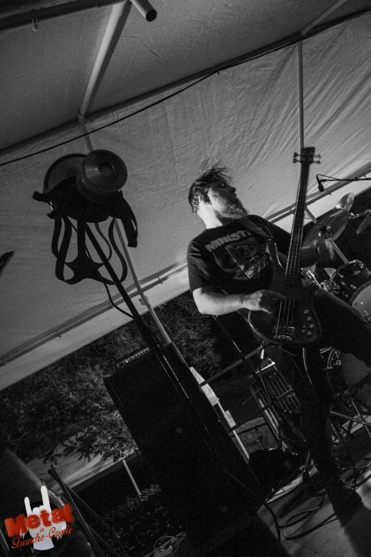 Defraktor prends la suite, avec un style bien plus bourrin ! L’ami Silvere de Corosteler tient la basse dans ce groupe de Thrash bien old school ! Le chanteur fait tout pour faire bouger le public, 2 ou 3 suivent mais ça reste en retrait, la faute a un son un poil trop brouillon et où la batterie a quasiment disparu. A revoir dans d’autres conditions mais ce style fait toujours son effet en live, ça donne envi de pogotter !