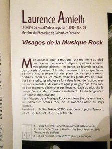 Au printemps 2016, elle a présenté en concours fédéral régional ce qu’on appelle une série d’auteur. Sa série « Visages de la Musique Rock » est arrivée première.