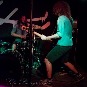 Comme à l’habitude maintenant, l’entrée en scène est théâtrale : Musique d’ambiance, arrivée des 3 membres du groupes, un par un. Jean’s noirs coupés au genou, chemises bleues, cravates noires et cheveux longs, un salut au public et le set est lancé dans une explosion musicale.