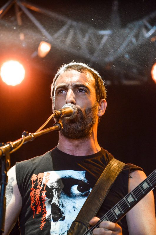 Ça joue grave, 3 guitares, dont celui, à jardin, qui saute partout. Le chanteur lui, semble possédé, lançant ses bras vers le ciel, comme s’il racontait des histoires, envoûtés par ses propres paroles. Les morceaux s’enchaînent, commençant souvent doucement par des arpèges ou des grandes réverbs, passages calmes, minimalistes pour ensuite tourner à des gros passages screamo violents. L’émotion est palpable, les morceaux nous tranchent en 2, ou nous hérissent les poils. On citera en vrac A Warm Room, Footsteps in the distance, Dawn and gase. Devant nous, un mec est bouleversé, à côté un autre chiale littéralement. Le groupe finit sa prestation sur un morceau progressif qui se termine en déflagration sonore monumentale, en lumières aveuglantes, avec des guitares qui montent en puissance et volume/larsens pour se couper brutalement à l’ampli. Il s’est vraiment passé un truc : on a tous pris une énorme tarte, voire c’est LA tarte du festival pour moi (stef).