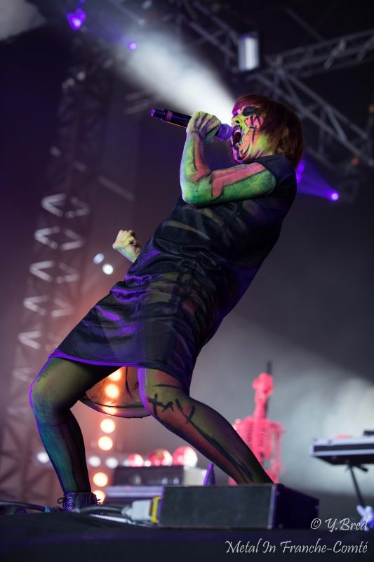 Au même moment joue The Fever 333. Connaissant les titres _ lâchés au compte-goutte pendant plusieurs mois, et suivant le groupe sur les plateformes de streaming, on avait très peur des effets du dernier album. Les premiers titres en mode rap-métal méchant, ont mués progressivement vers des titres beaucoup plus easy-listening néo-rap-métal, on a un peu peur. Un MC + un Batteur/Samples + Une guitare : on se dit que la Mainstage est peut-être (trop) grande. Eh bien QUE NENNI. Une grosse prestation va nous amener à avoir tort. Un MC fou qui court partout, saute dans le public, glisse sur 4 mètres sur scène, un batteur qui saut depuis son tabouret, lance ses cymbales _ pied compris _ saute depuis les sides-retours… Un bon gros déjanté, à aller revoir en live.