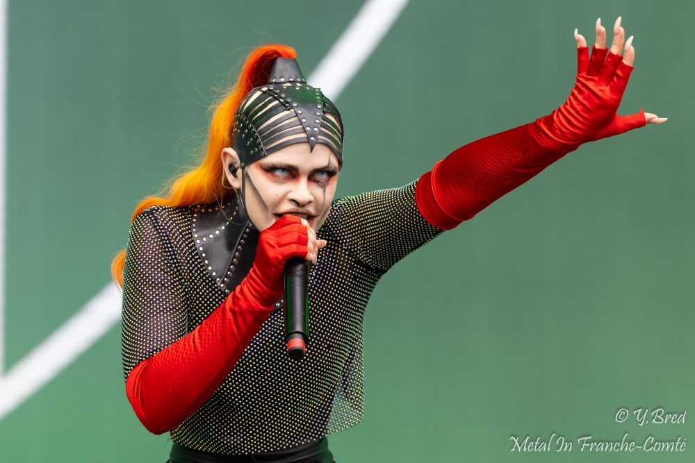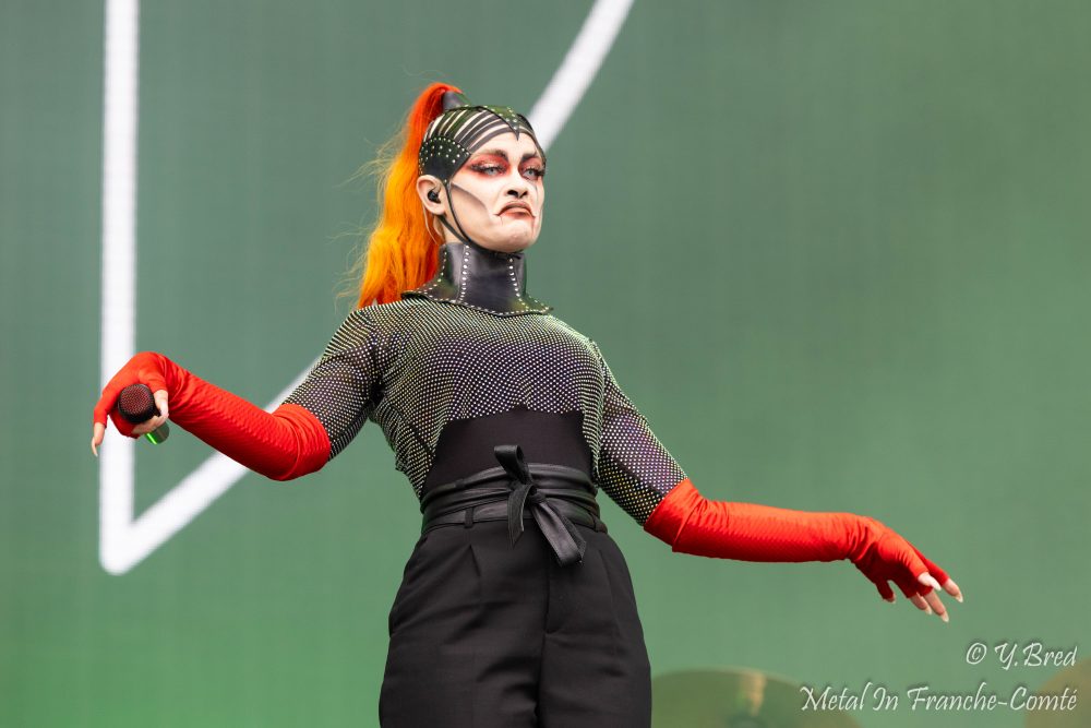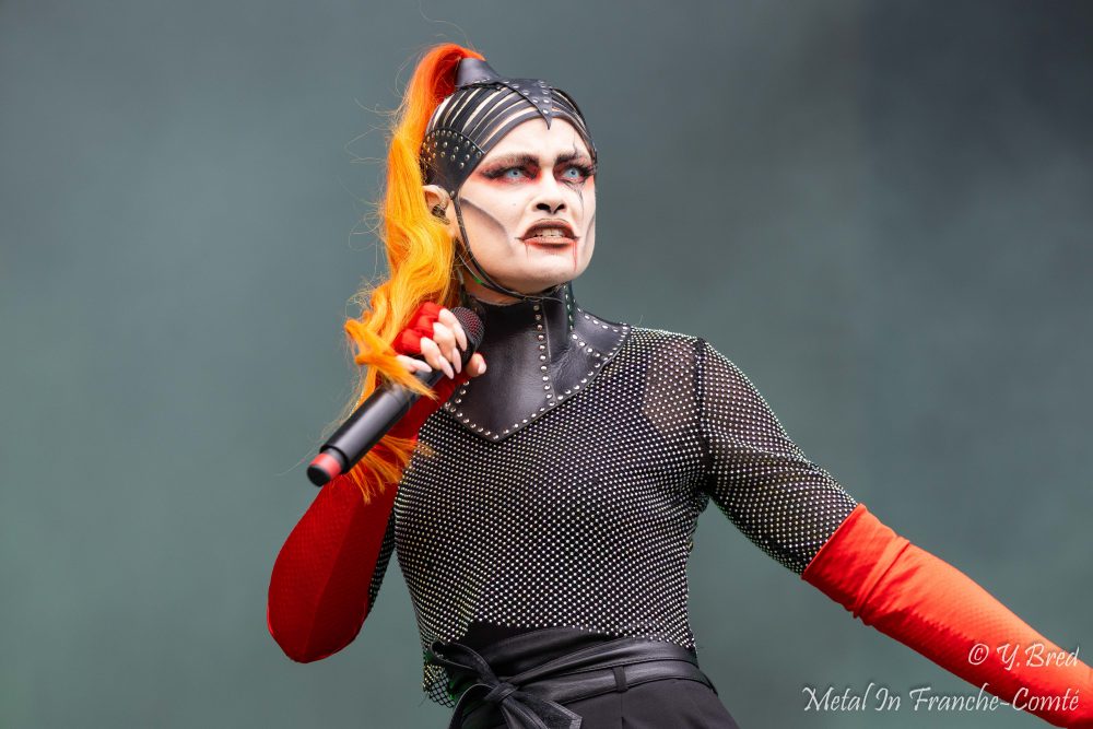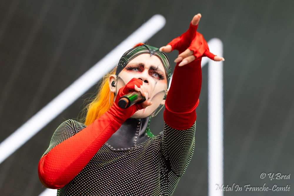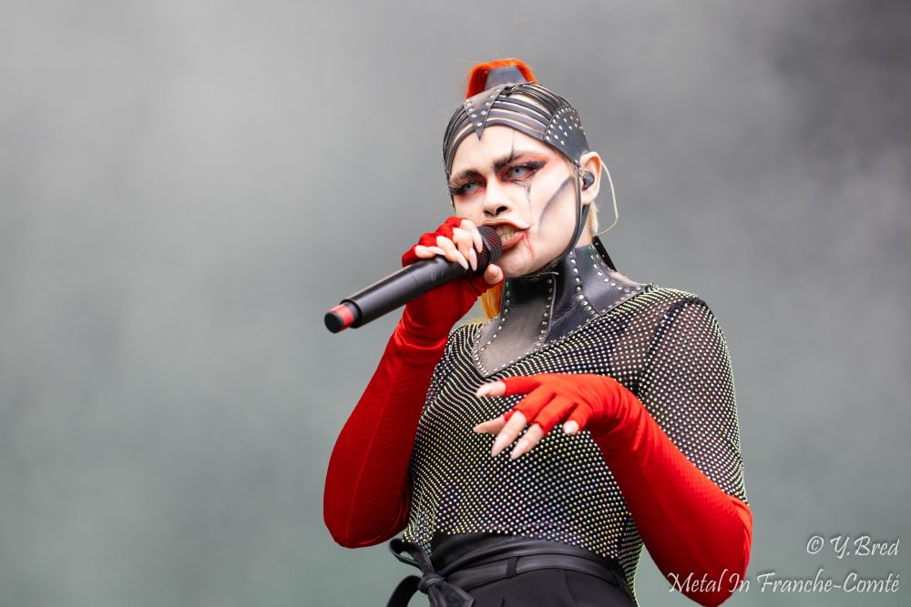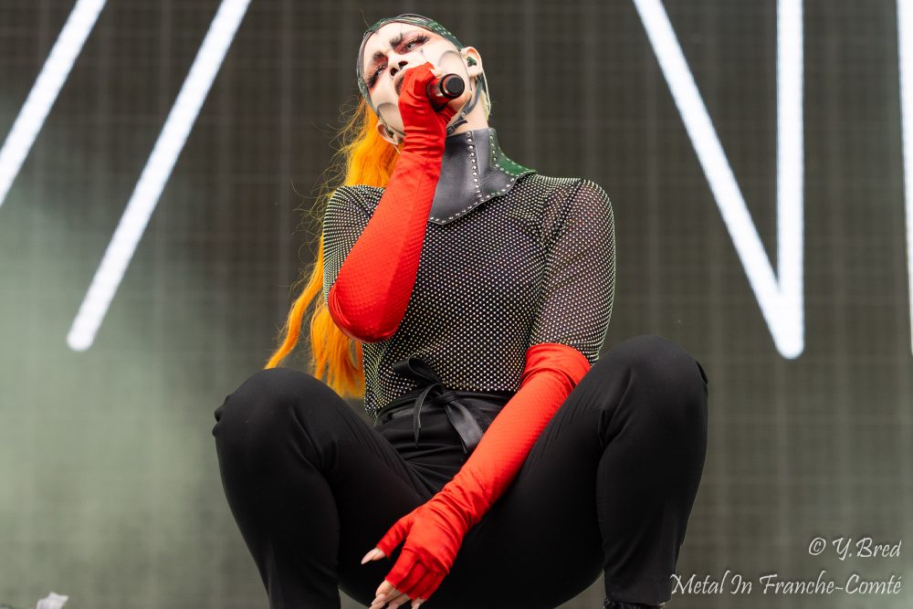 Ça valait le coup de faire l’effort de se lever tôt ce matin pour y découvrir SKYND sur la Mainstage. Une autre des grosses claques de cette édition ! Ce groupe australien distille un Métal Indus, avec des teintes électro. Fondé en 2018, ils ont 4 EPs à leur actif. Leur concept est de mettre en musique des crimes qui ont faits la une de faits divers… tueurs en série, leaders de secte, morts inexpliquées… L’atmosphère musicale sait se montrer dérangeante, et colle parfaitement au thème. Je ne serai pas étonné de voir un jour un de leur titre repris dans un polar américain genre « Seven« …Exemple ici avec « Elisa Lam ». Tant dans leurs clips que sur scène, on voit qu’un gros accent est mis sur l’esthétisme. Si l’aventure vous tente, pas loin de nos contrées, vous pourrez les voir à La Laiterie à Strasbourg le 23 novembre prochain.