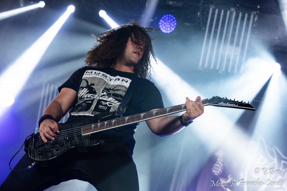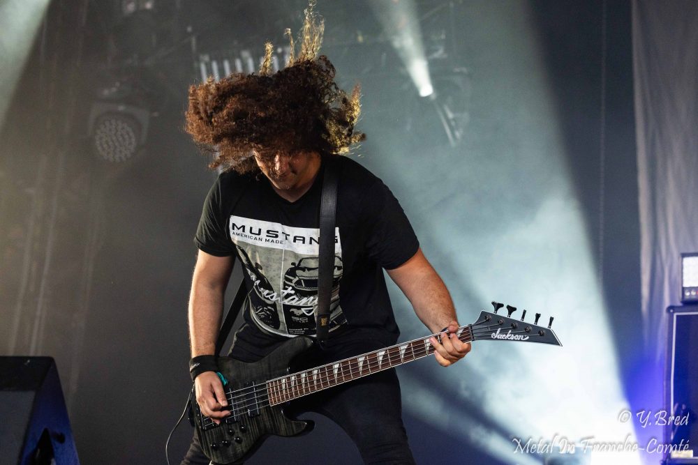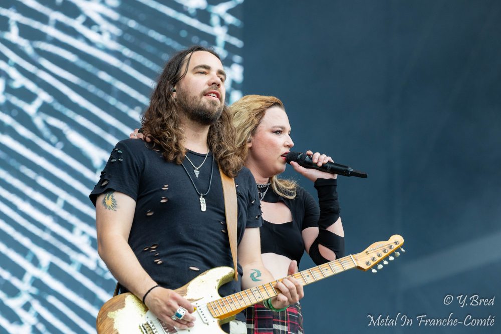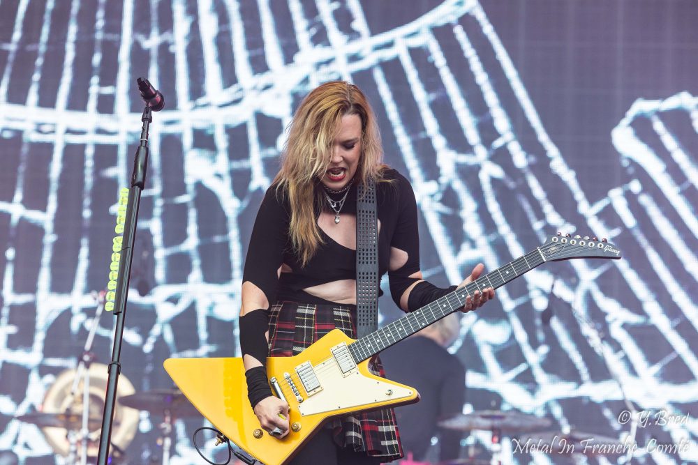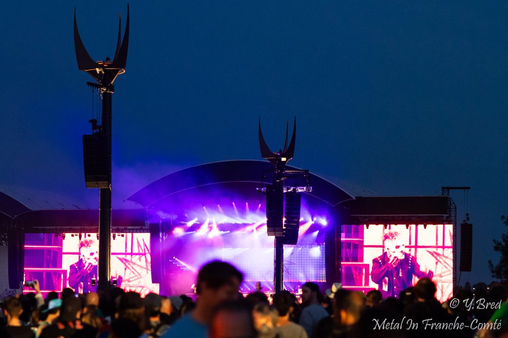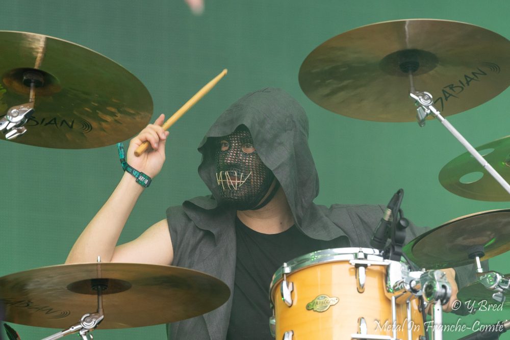 Ça valait le coup de faire l’effort de se lever tôt ce matin pour y découvrir SKYND sur la Mainstage. Une autre des grosses claques de cette édition ! Ce groupe australien distille un Métal Indus, avec des teintes électro. Fondé en 2018, ils ont 4 EPs à leur actif. Leur concept est de mettre en musique des crimes qui ont faits la une de faits divers… tueurs en série, leaders de secte, morts inexpliquées… L’atmosphère musicale sait se montrer dérangeante, et colle parfaitement au thème. Je ne serai pas étonné de voir un jour un de leur titre repris dans un polar américain genre « Seven« …Exemple ici avec « Elisa Lam ». Tant dans leurs clips que sur scène, on voit qu’un gros accent est mis sur l’esthétisme. Si l’aventure vous tente, pas loin de nos contrées, vous pourrez les voir à La Laiterie à Strasbourg le 23 novembre prochain.