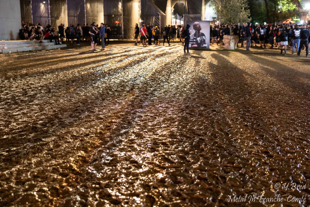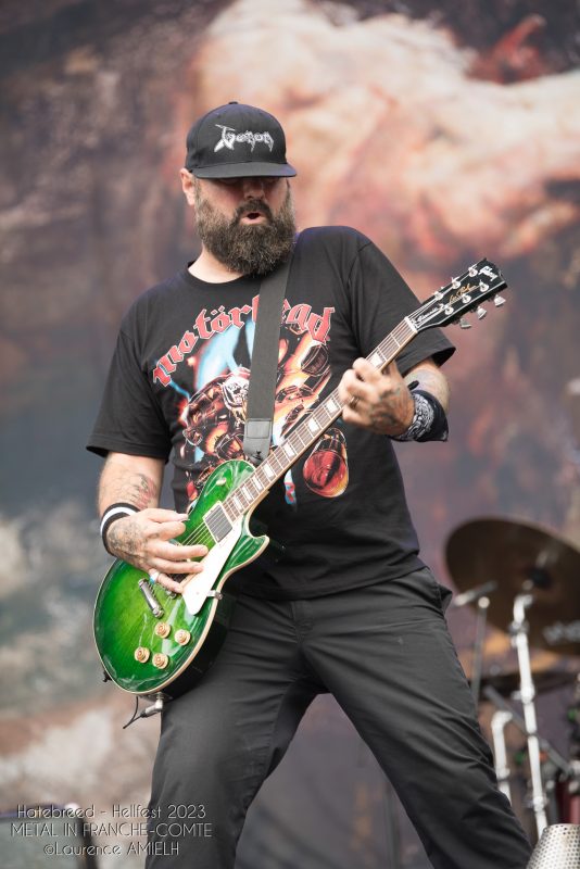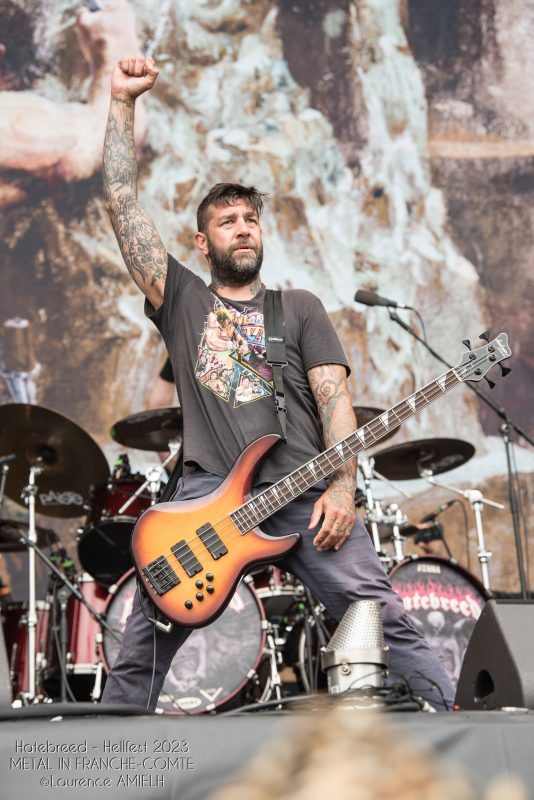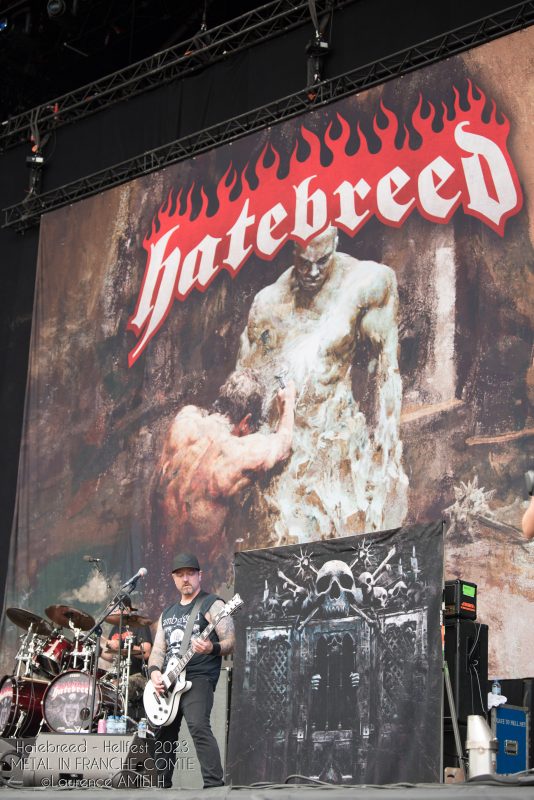 Nous dirigeons nos pas vers la MAINSTAGE où officie HATEBREED. Les Américains chauffent le public à blanc avec leur Hardcore d’une efficacité dévastatrice. Ça remue, ça headbang, ça slam comme si la pluie n’avait pas d’effet sur les festivaliers. L’ambiance est posée, une ambiance qui sent bon brooklyn avec des relents de Biohazard en plus énervé.