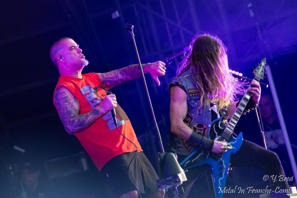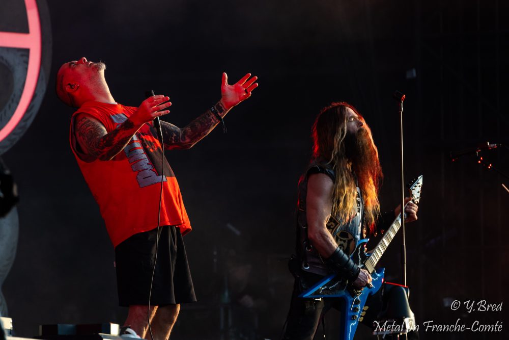 On enchaîne en MAINSTAGE avec PANTERA. Nous ne restons pas plus de quelques chansons pour leur set, juste le temps de voir si la légende tenait encore debout. Mais lassés des récentes pitreries fascisantes de M. ANSELMO, nous préférerons tourner les talons. Le set avait débuté par une longue vidéo présentant la vie du groupe à leur apogée (et évitant soigneusement leur période Hair Metal, sic), en guise d’hommage à Dimebag DARREL et Vinnie PAUL. La fosse émue retient religieusement son souffle… Jusqu’aux premières notes de “A new level” qui mettent tout le monde d’accord. Zakk WYLDE et Charlie BENANTE ne sont ni là pour jouer les remplaçants, ni pour faire de la figuration. Toutes considérations idéologiques mises à part, c’est bien l’âme et le cœur des frangins disparus qui font résonner l’arène de Clisson. Il suffit de fermer les yeux, pour les entendre avec nous.