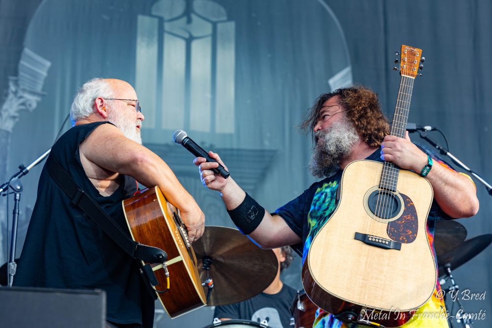 Vous n’êtes pas anglophone et vous n’avez pas vu le film « Tenacious D and the Pick Of Destiny » ? Pas grave, le show est grand guignol et on s’esclaffe de bon cœur devant le Satan gonflable, le saxophone géant (le fameux « Max-A-Boom« ), ou le responsable pyrotechnique à côté de ses pompes. Mais on ne saurait trop vous conseiller de mater le film sus-mentionné, et/ou les différents clips sur YouTube, en commençant par « Kickapoo« , titre par lequel ils ont débuté leur concert de ce jour, et qui explique le début du groupe. (Vous y verrez également une apparition du regretté Ronnie James DIO). Vous l’aurez compris, un des coups de cœur de la journée !