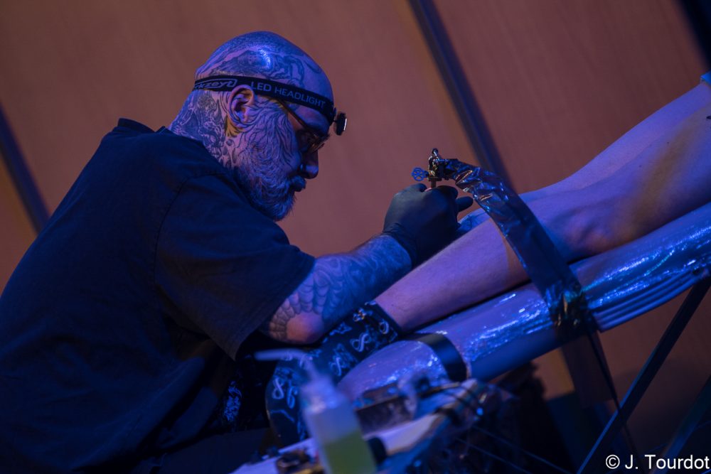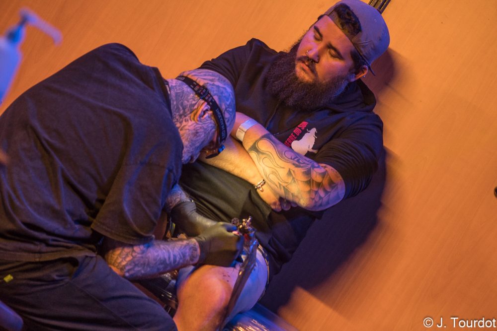 Allez, quelques autres images d’ambiance pour la route, avec des ateliers tatouage et air-guitar. Ben ouais, ambiance Hellfest quand même.