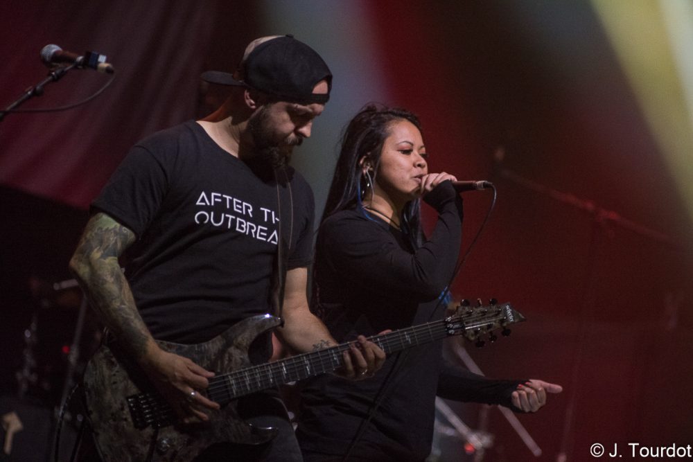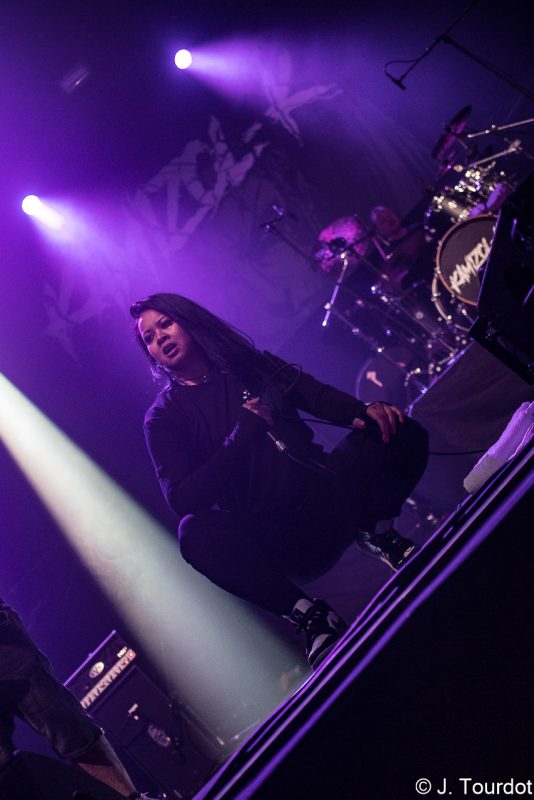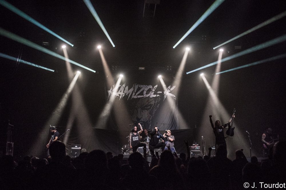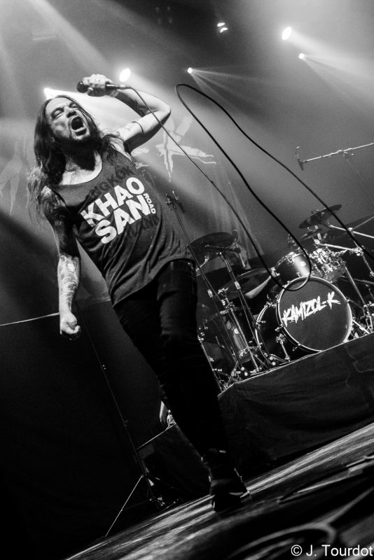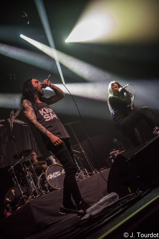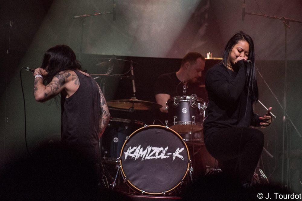 Jour suivant, on change un peu d’ambiance, et là pour le coup on a vu moins souvent les 2 groupes du jour. On entame avec du Metal Hardcore avec les Lyonnais de KAMIZOL-K. Super vocals de Lionnel et Marie.
