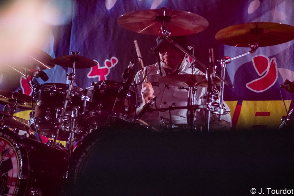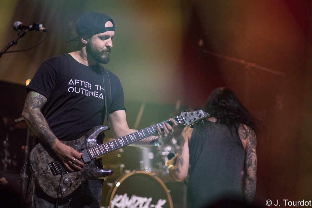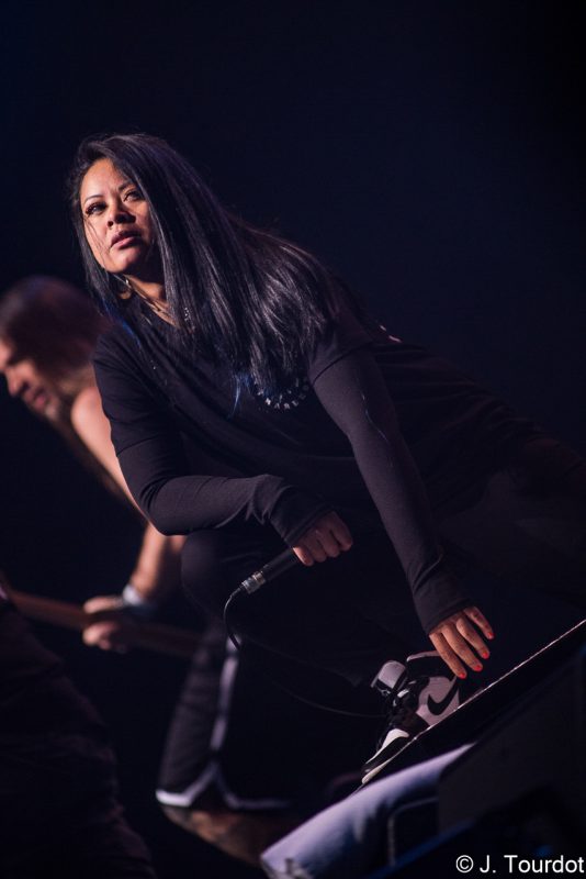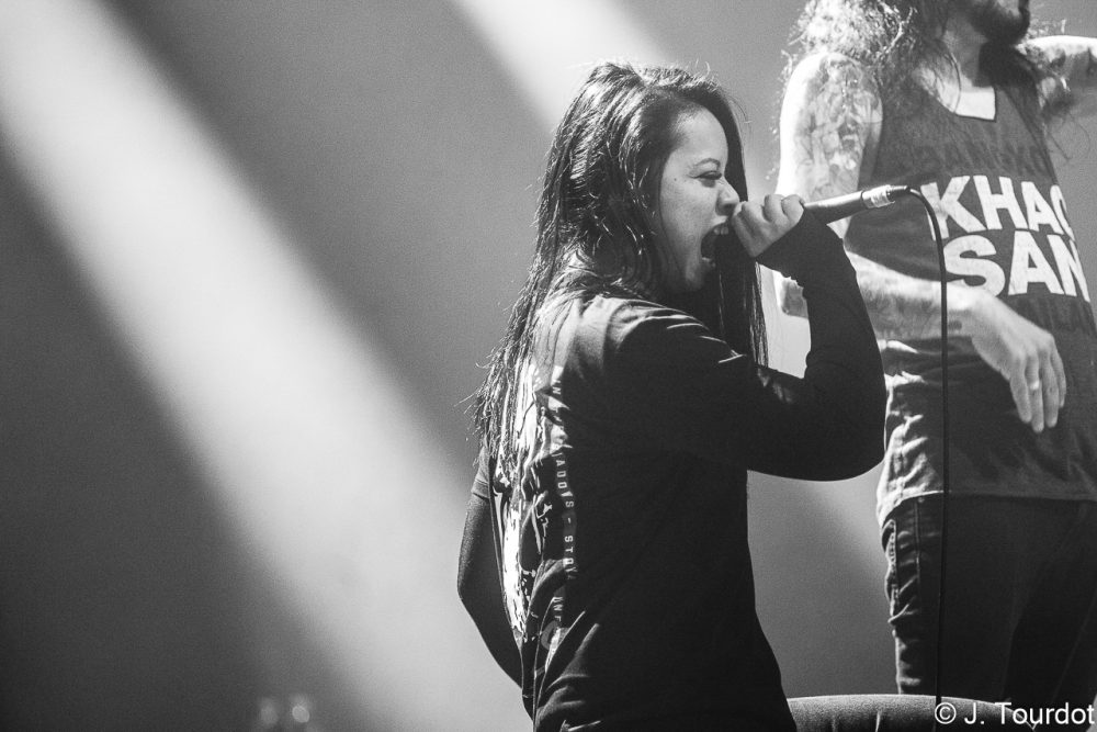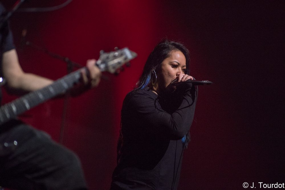 Jour suivant, on change un peu d’ambiance, et là pour le coup on a vu moins souvent les 2 groupes du jour. On entame avec du Metal Hardcore avec les Lyonnais de KAMIZOL-K. Super vocals de Lionnel et Marie.