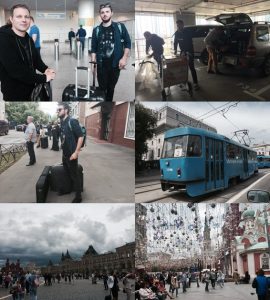 prend bel et bien l’avion pour Moscou en milieu de matinée ou fin, en fait je ne sais plus trop. On est bien cramés mais en même temps ultra soulagés d’être enfin proche du but ! On arrive enfin à Moscou, on attend Andrey et notre chauffeur. Deux personnes que l’on n’a jamais vu et qui jouent un grand rôle sur le bon déroulement de notre séjour. Forcément l’hypothèse d’avoir à faire à deux connards me traverse l’esprit. Finalement il n’en sera rien, les mecs sont adorables. Ils nous emmènent au parking où l’on va découvrir la voiture, un 4*4 assez spacieux. On sera quatre à voyager, le groupe et le driver, Andrey ne viendra pas avec nous. Le fait d’être un trio est un gros avantage question budget de location de voiture. On trace alors direction le centre de Moscou et déjà on hallucine sur l’étendu du pays. Il faut plus d’1h30 pour relier l’aéroport au centre alors qu’il n’y a pas vraiment de bouchons, c’est juste que Moscou et sa périphérie couvrent une très grande superficie.