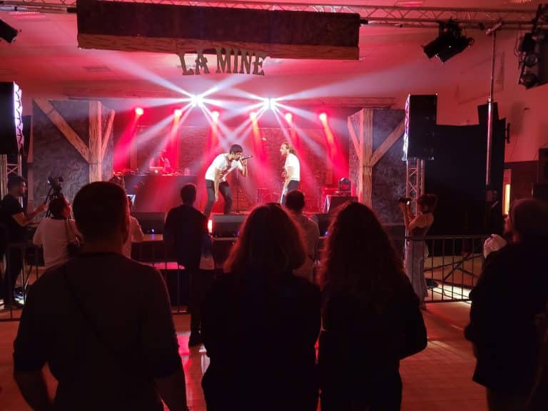 À 19h il y a déjà du monde et l’organisation se montre au top, ce sera une constante tout le long de la soirée. Du rap, de la pop, de l’électro, du metal il y en a pour tous les goûts ou presque. Chaque groupe / artiste bénéficie de 25 minutes de temps de jeu avec 15 minutes de changement de plateau ! Avec 10 groupes par soir, ça ne chôme pas et le running order est déterminant pour ne pas prendre de retard, avoir pas mal de rappeurs aide, d’ailleurs, à bien goupiller tout ça !