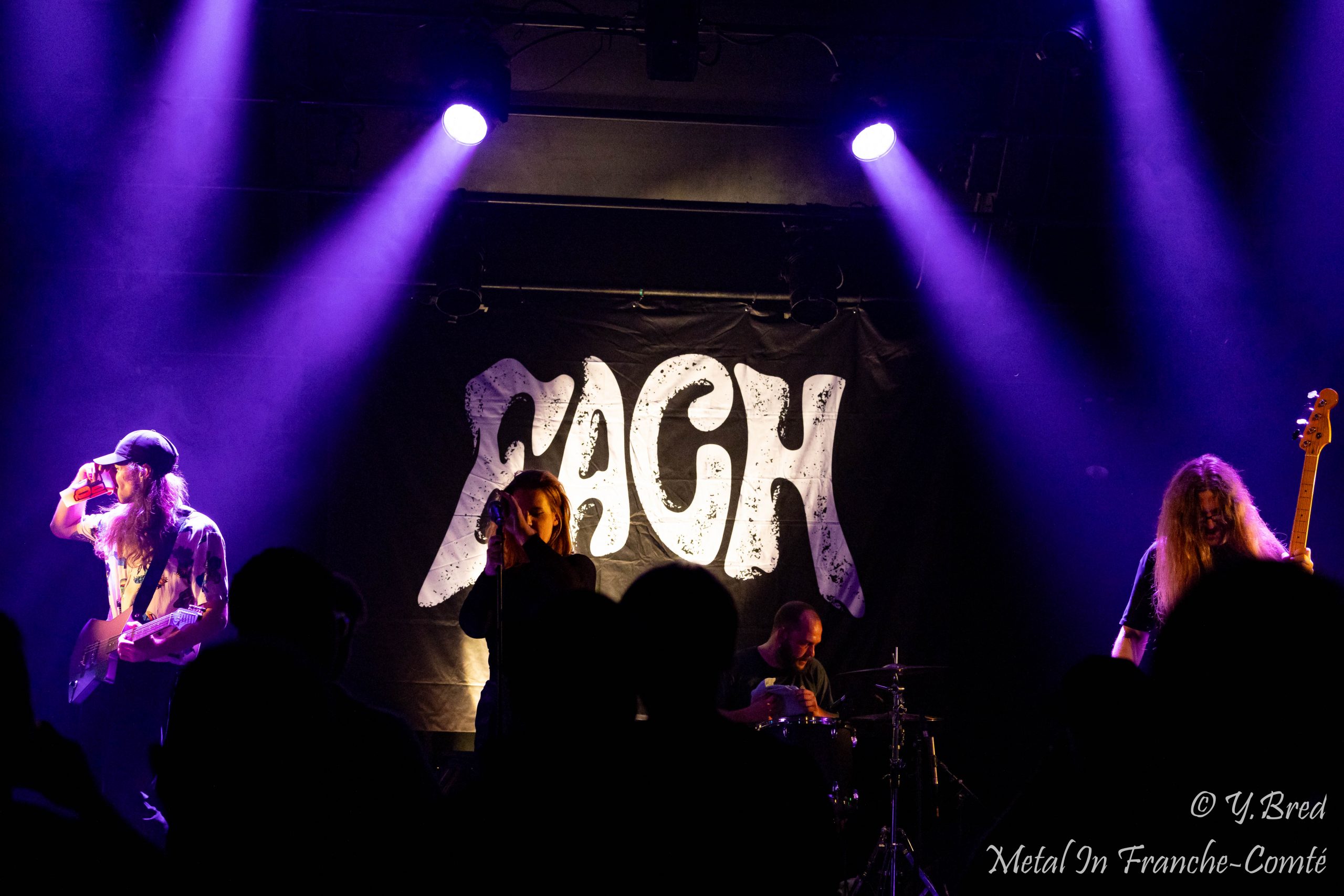 Une basse sérieuse, une chanteuse concentrée, un guitariste avec ses moments speed (et qui ne se laissera pas faire par un gars du public qu’il trouve un peu trop familier avec son retour de son), et un batteur qui s’affale sur ses fûts… On adore !