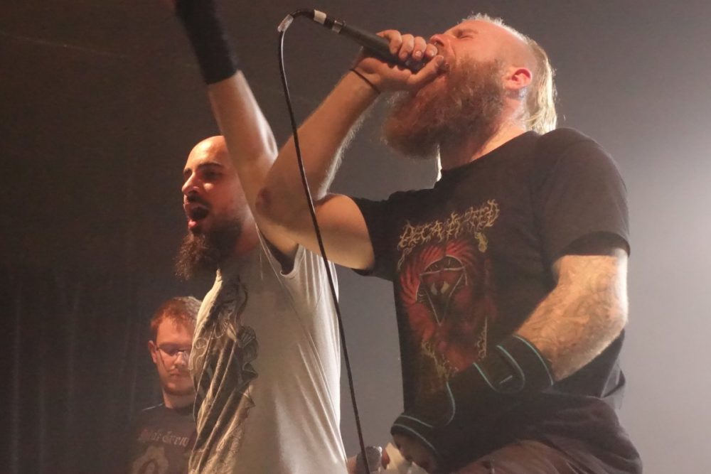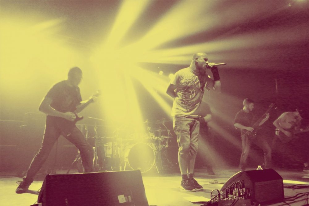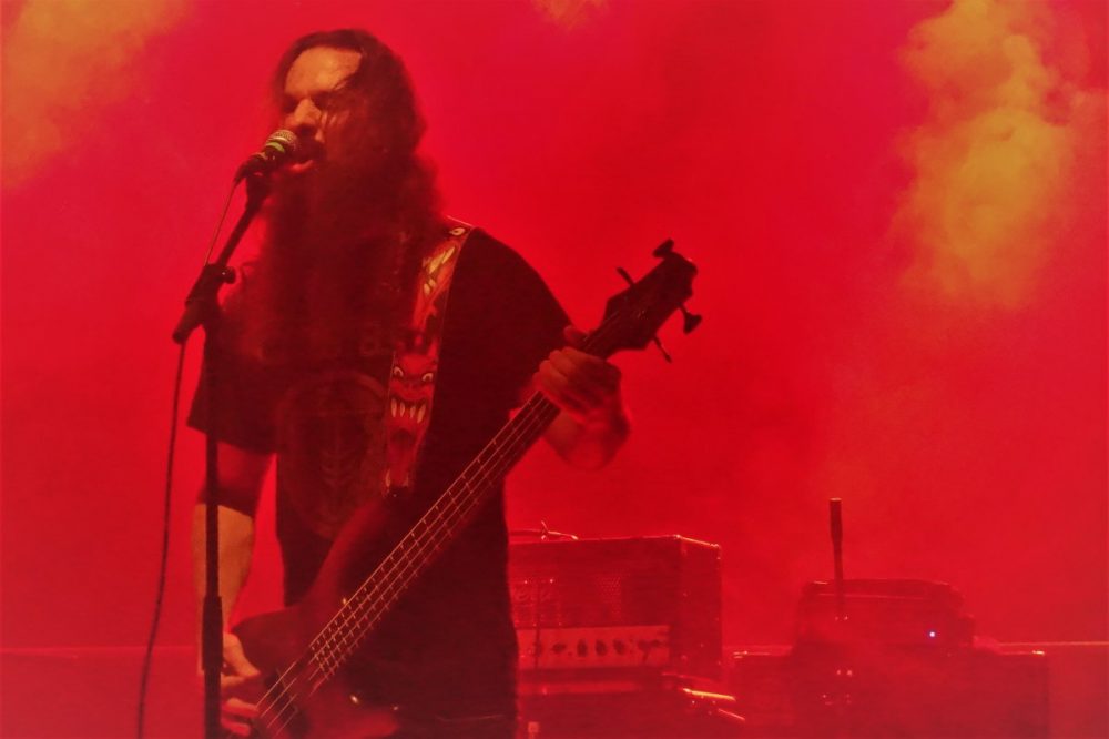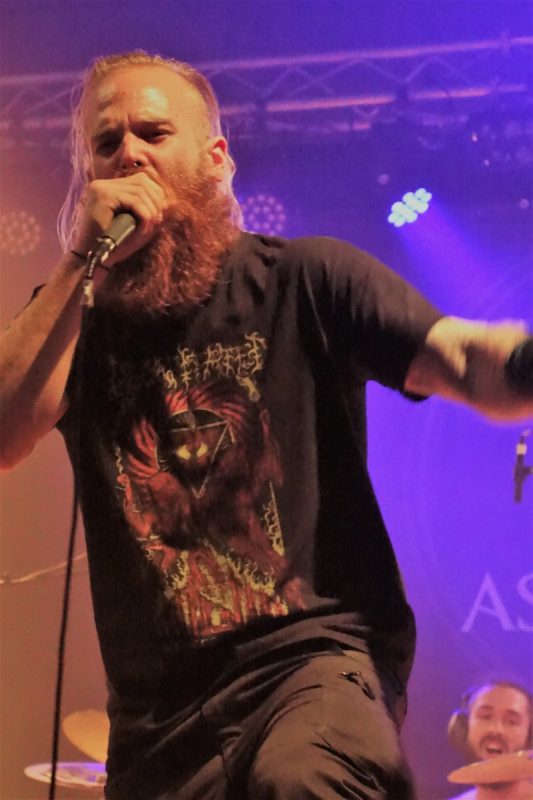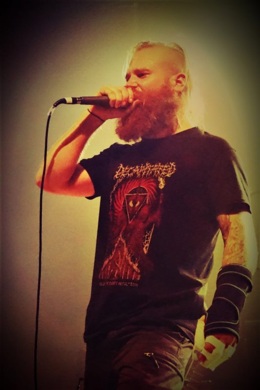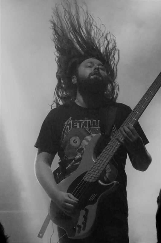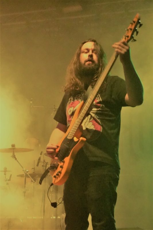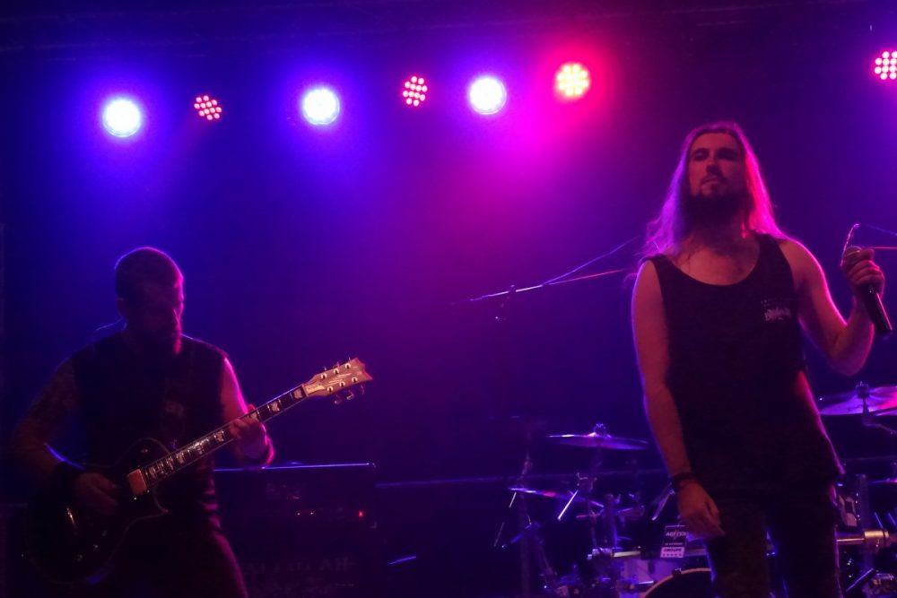 Swarmaggedon s’installe avec son backdrop géant !! Toujours à la recherche d’un deuxième gratteux, le groupe est lourdement pénalisé. Et ce soir, c’est double peine, la chanteuse est malade et le son va s’avérer catastrophique. Les samples sont bien trop forts, la batterie sous-mixée et parfois décalée. Les ingés sons n’ont pas su mettre en valeur le Death Mélodique des Bisonstins, c’est dommage ! Je préfère me garder en tête l’une de leur première date lors de la fête de la zik au Titty Twister, où le groupe avait montré un sacré potentiel !