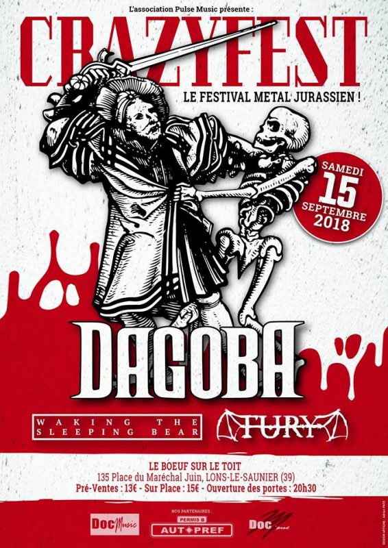 Malheureusement, autour de Lons-Le-Saunier et de par sa mairie maladive, la culture a la vie dure. Le Crazyfest se tenait donc pour l’ultime fois au Bœuf sur le Toit, à Lons-Le-Saunier, ce samedi 15 septembre. A l’affiche, deux groupes locaux, Waking The Sleeping Bear et Fury, et une tête d’affiche et pas des moindres : Dagoba.