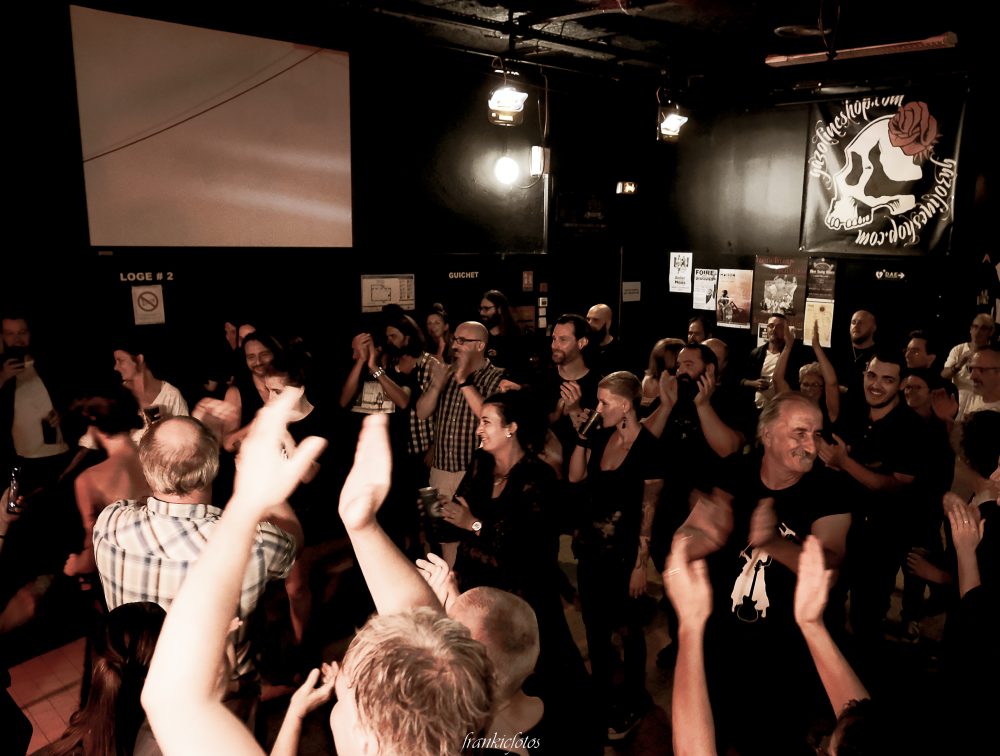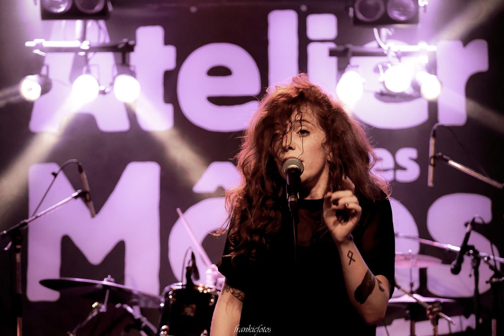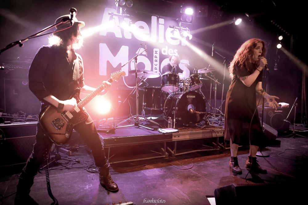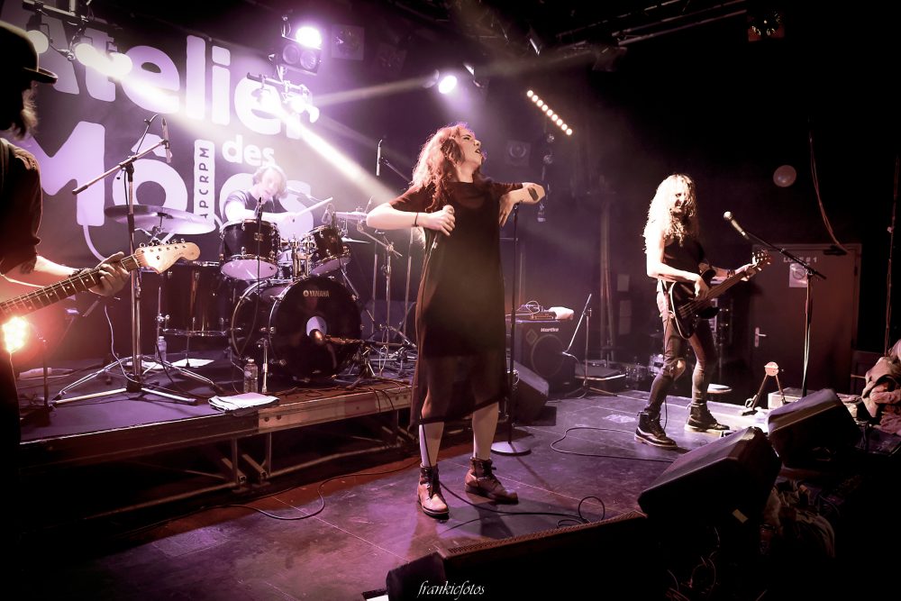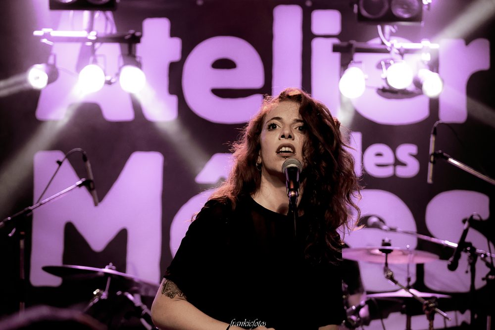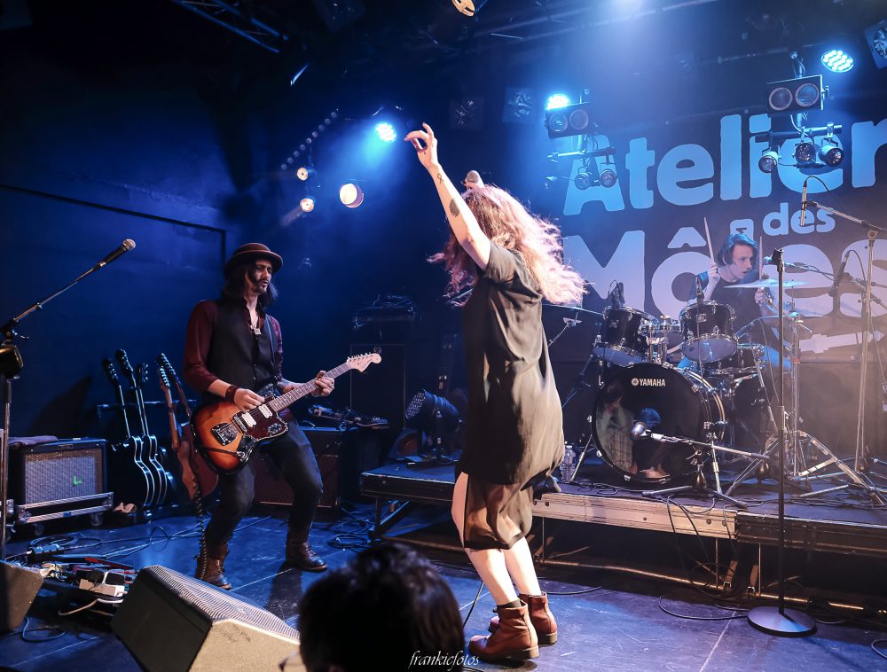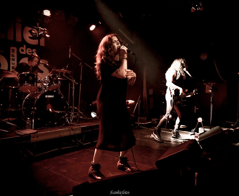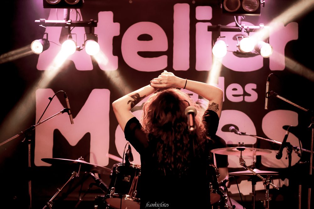 Kim Melville, venue de Paris, ouvre la soirée. En backstage, le trac monte très fort pour elle : A l’Atelier des Môles, ce soir, ce sera sa toute première scène ! J’entends les musiciens rassurer la jeune fille… et hop il est l’heure de monter sur scène !