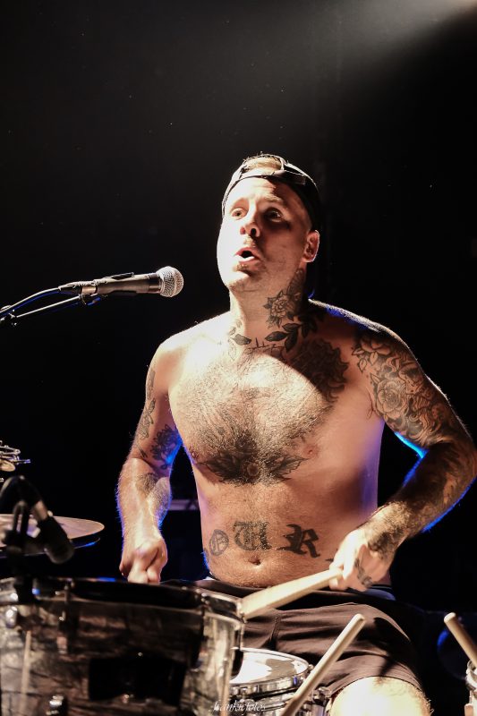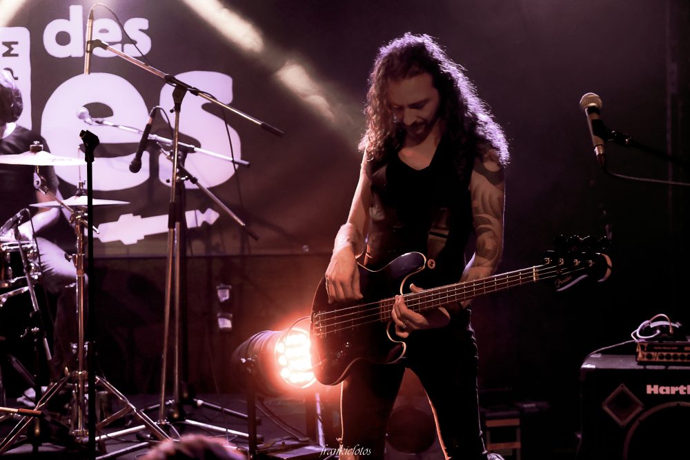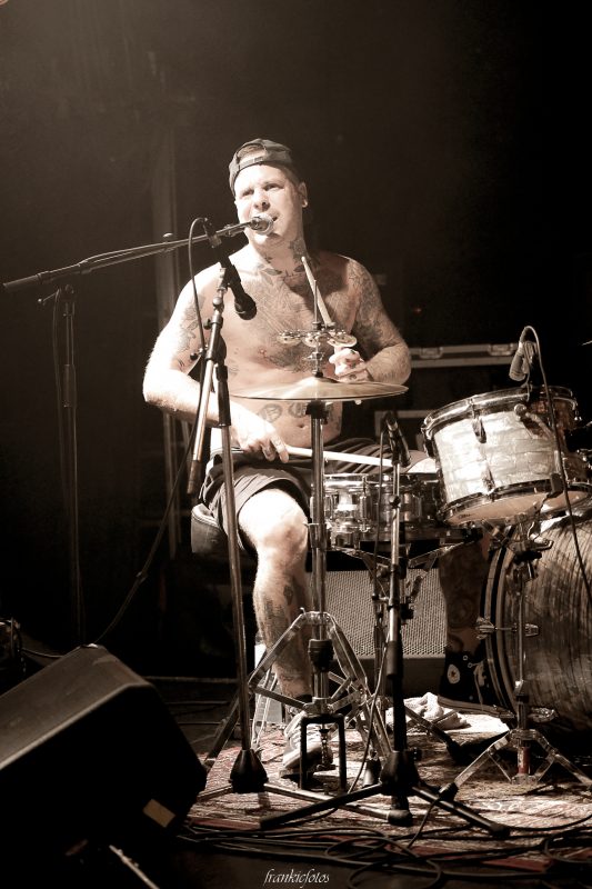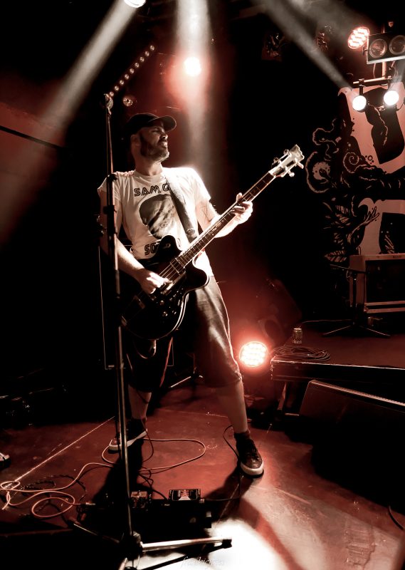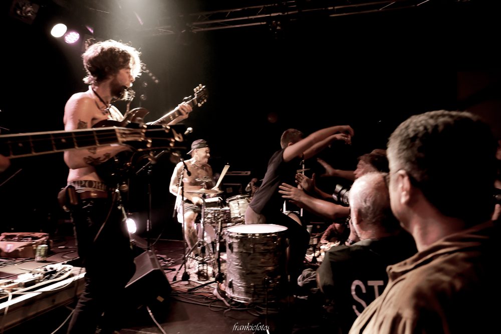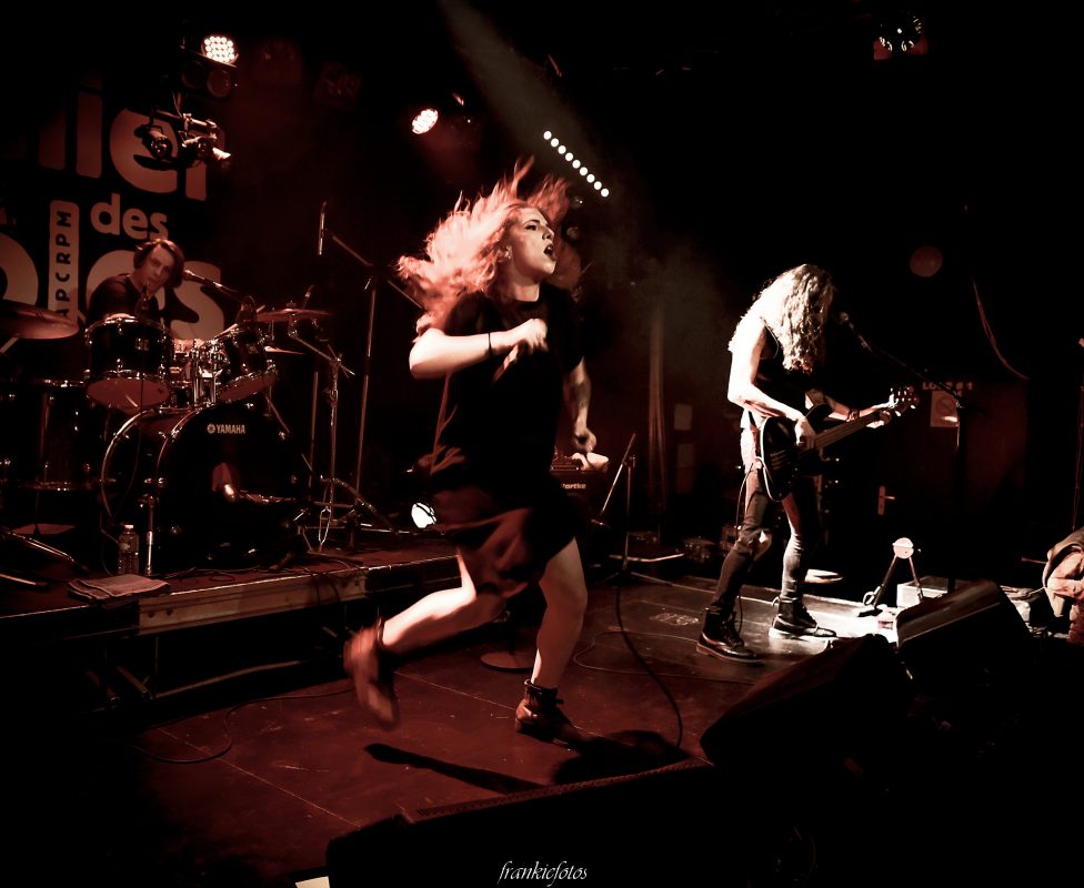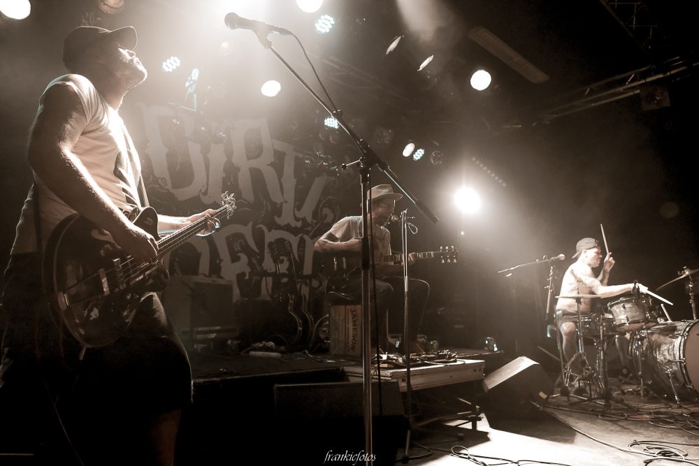 La disposition sur scène du groupe nous change des dispositions habituelles où le placement du batteur dans le fond de la scène laisse très peu de chance à des photos de qualités, là on peut profiter du trio dans un jeu de lumières idéal.