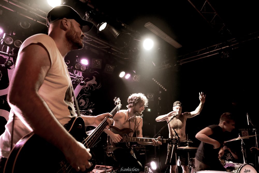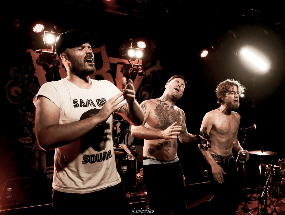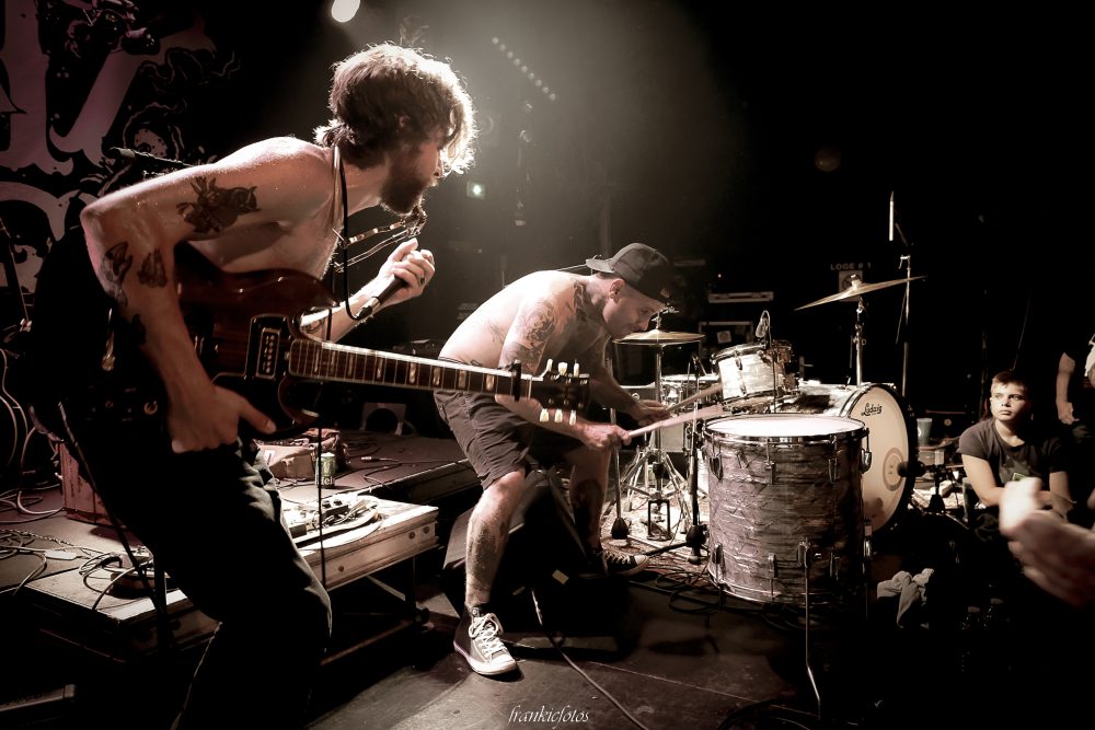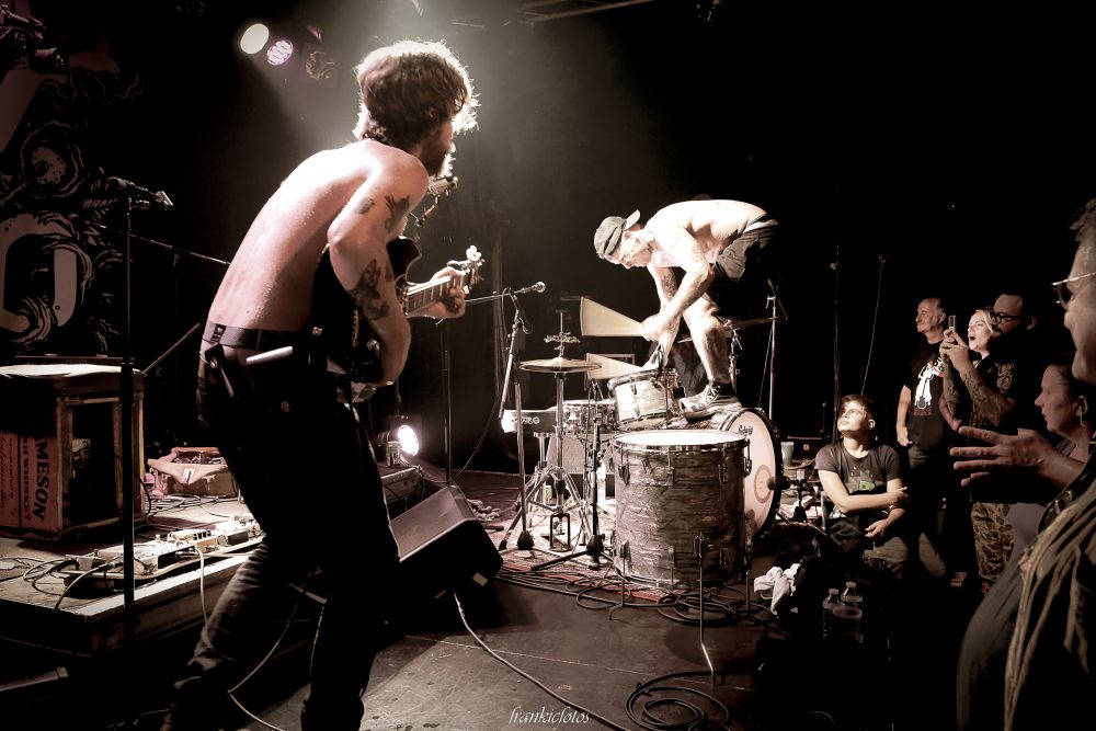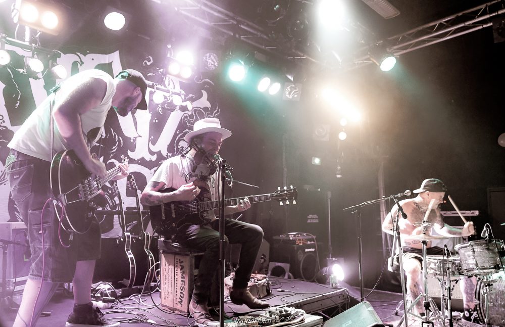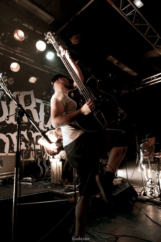 La disposition sur scène du groupe nous change des dispositions habituelles où le placement du batteur dans le fond de la scène laisse très peu de chance à des photos de qualités, là on peut profiter du trio dans un jeu de lumières idéal.
