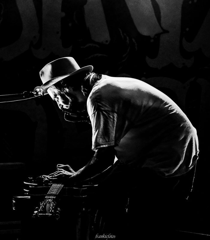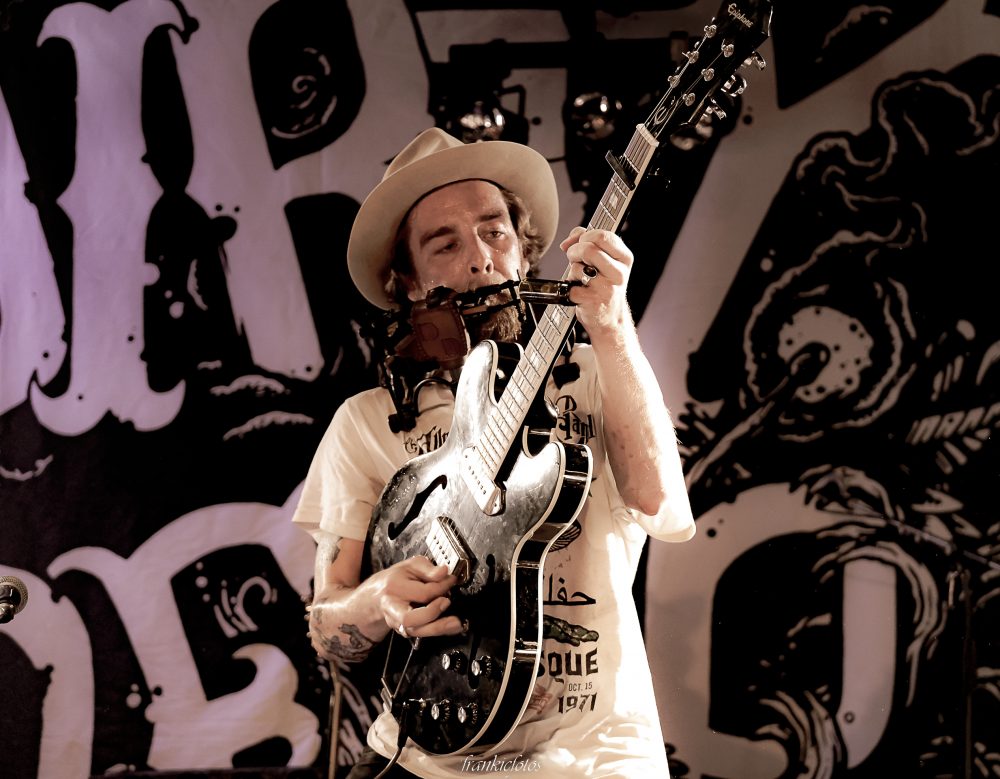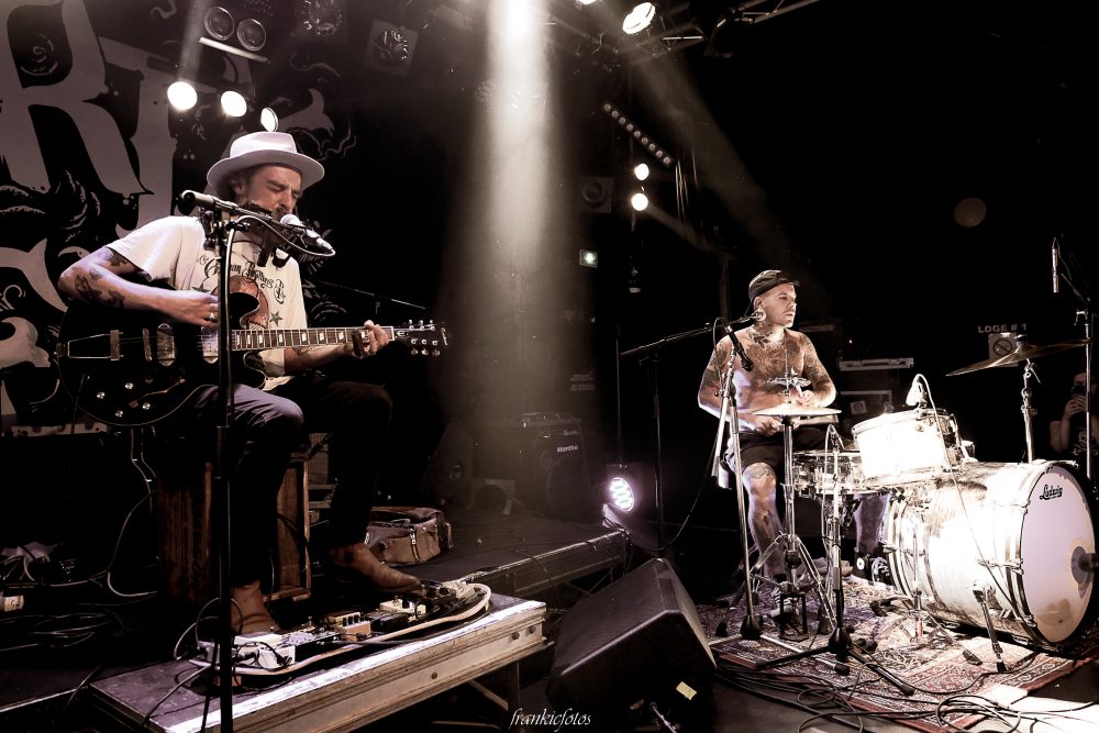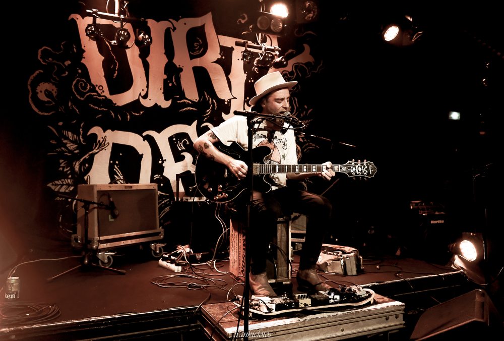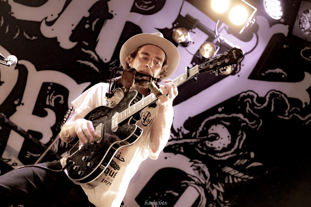On entre avec eux dans un univers Heavy blues et Garage Blues. Victor à la barbe à la Duane Allman démarre le show assis sur sa caisse en bois estampillée Jameson Wiskhey , j’adore ce look vieux bluesman, son jeu à l’harmonica, ses guitares old style, un univers très Blues Delta avec une pointe grunge.