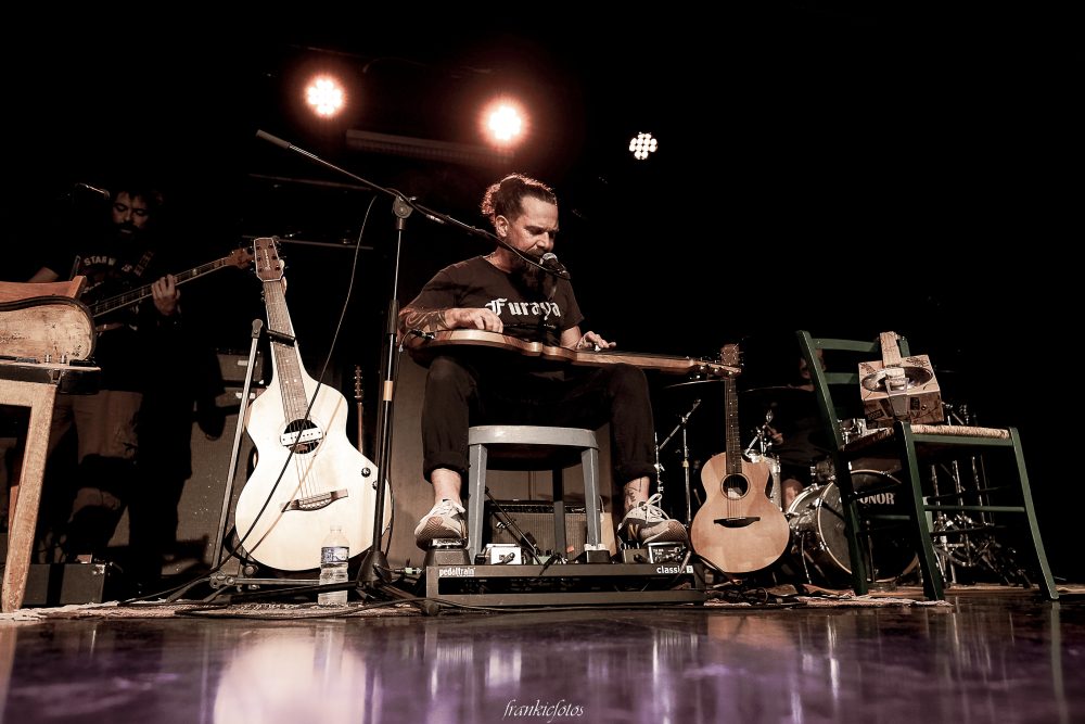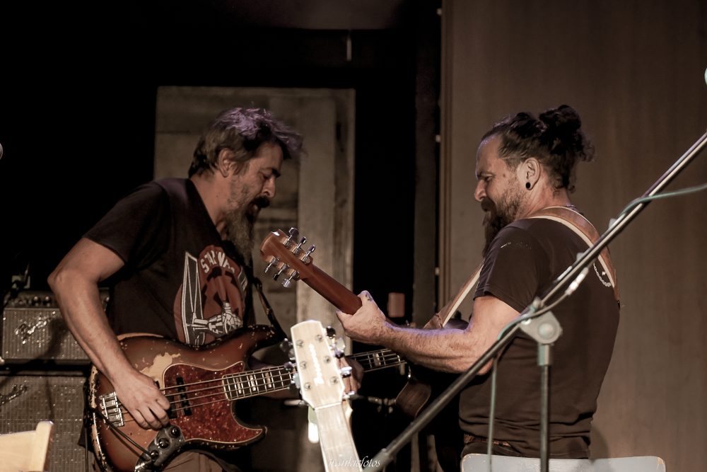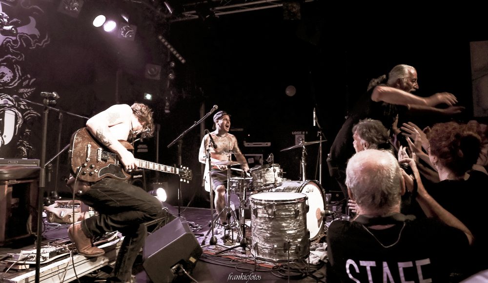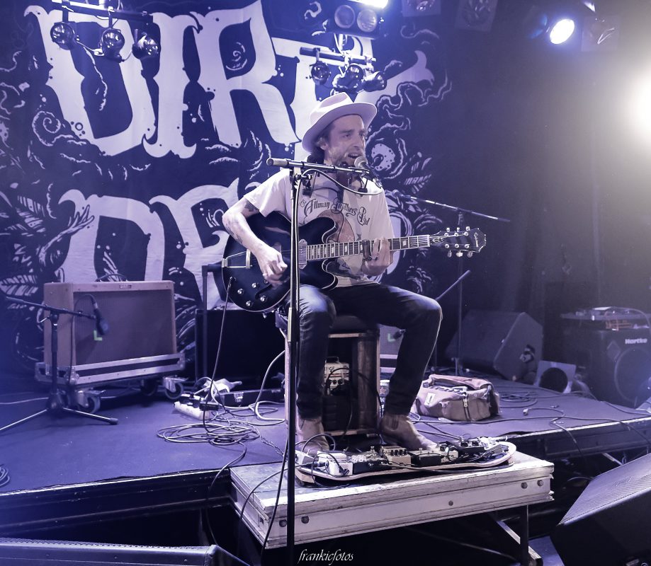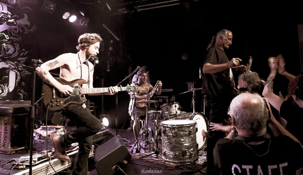 On entre avec eux dans un univers Heavy blues et Garage Blues. Victor à la barbe à la Duane Allman démarre le show assis sur sa caisse en bois estampillée Jameson Wiskhey , j’adore ce look vieux bluesman, son jeu à l’harmonica, ses guitares old style, un univers très Blues Delta avec une pointe grunge.
