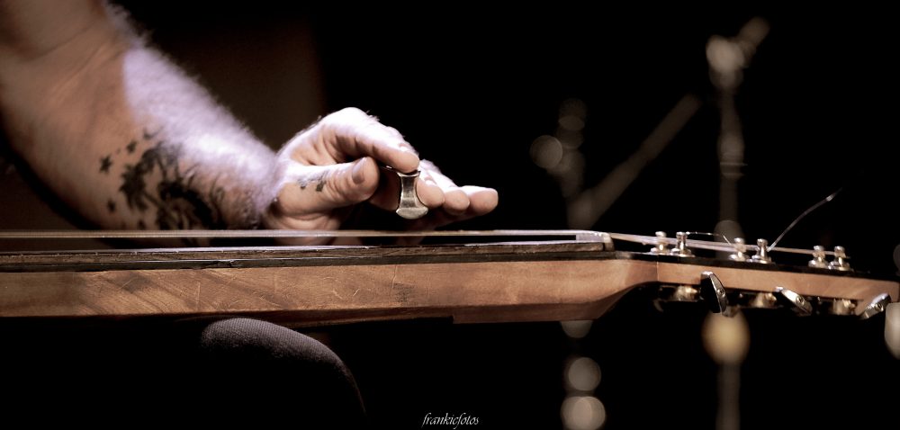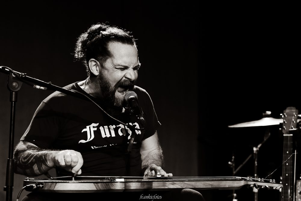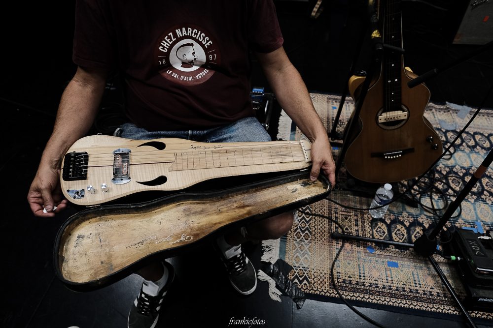 Will Barber, c’est déjà une gueule, un style Old School, une voix rauque comme on en connaît au fin fond des bayous de Louisiane. Un adepte de la guitare Lap Steel (jouée sur les genoux) et autres guitares improbables comme notre luthier local Laurent Girardclos de Cigare Broc Guitare sait en faire, d’ailleurs deux de ses instruments accompagneront Will sur la scène dont une très jolie Lap Steel habillée de son étui de violon.