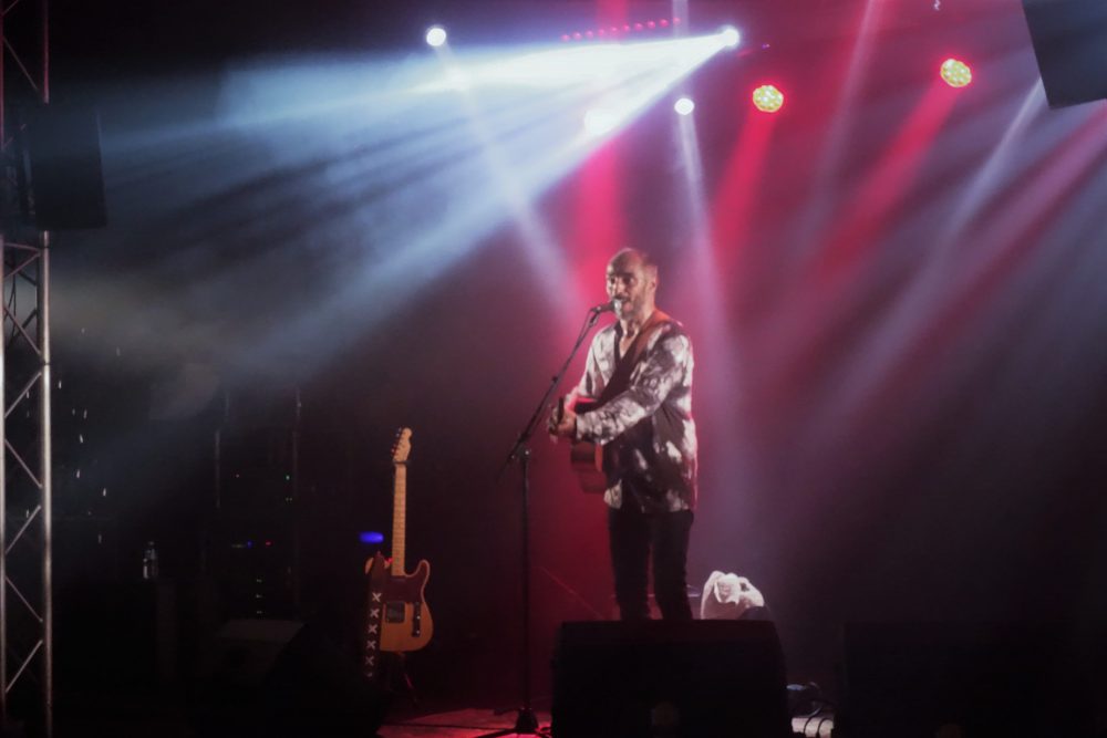 Direction donc l’intérieur feutré de la salle, pour le 1er set du festival, ouvert, avec brio (et avec sa guitare aussi), sa simplicité et sa générosité, par le charmant et charismatique Dom Colmé .. une ouverture en douceur énergique qui augurait que du bon ! Malgré le peu de public à cette heure-là, une belle ambiance s’est dégagée, en lien avec la complicité des regards, Dom Colmé est même venu au plus près des spectateurs pour partager un beau moment musical, comme il sait si bien le faire ! Beau !