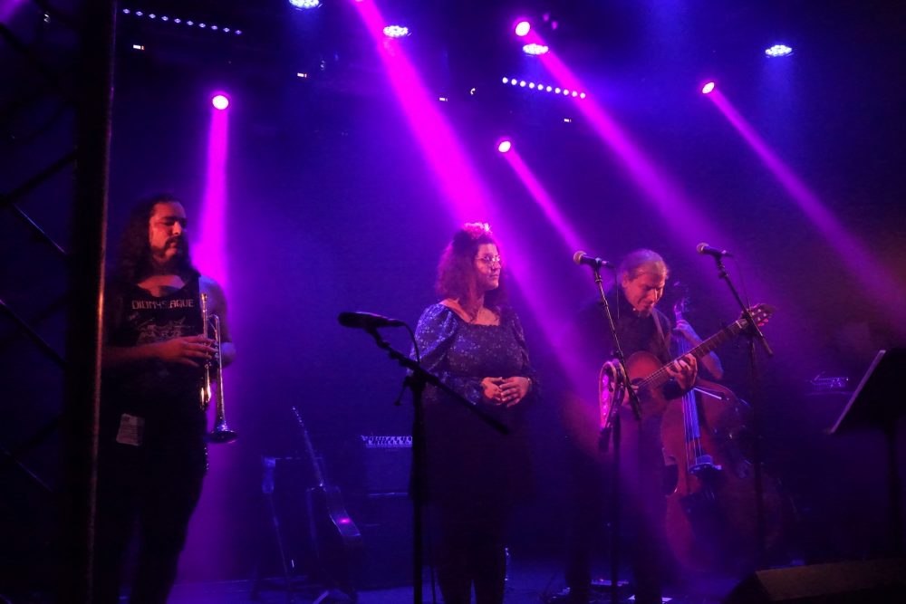 Retour à la musique, au sein (nourricier en décibels) de la Poudrière, pour assister à un nouveau hold-up auditif par les Bonye & Klyde ! Accompagnés du Kid à la contrebasse, les vésuliens Roz et Joce partent en cavale musicale, intimiste et pleine d’émotions. Des chansons françaises à texte prenantes, émouvantes ou dénonçantes, nourries par une belle complicité, une prestation qui prend au cœur, quand on écoute tout bien ! Encore un beau moment, devant un public attentif et de plus en plus dense. Kidnappant !