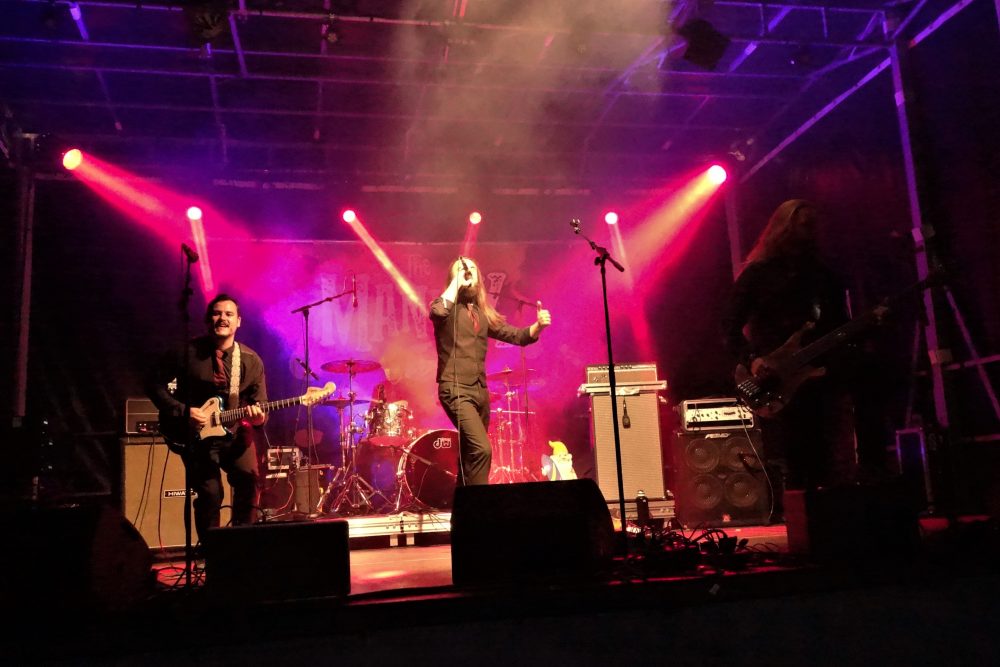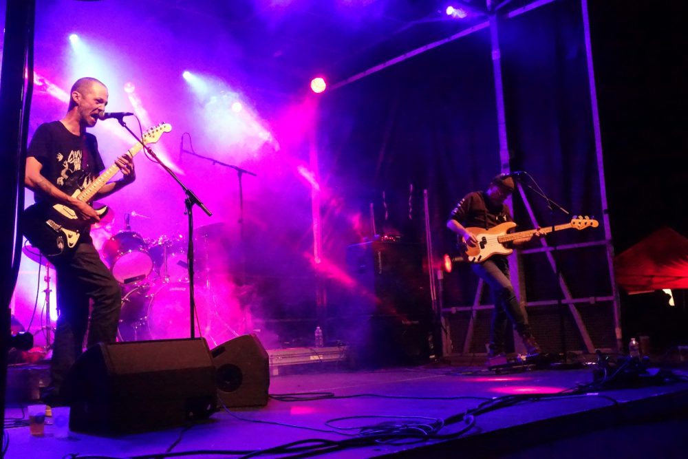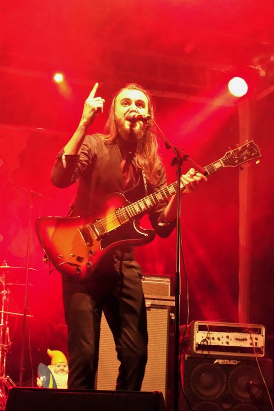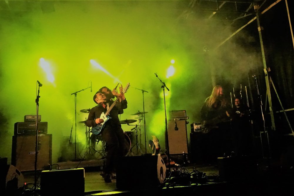 Premier groupe à grimper sur la scène extérieure, The Maniax lancent la seconde partie avec leur énergie communicative, une explosion d’influences mélangeant le rock alternatif, avec des accents surf ou stoner, psyché et sixties, un univers qui leur est propre, ils ne tiennent pas en place, occupent tous les centimètres carrés de la scène, et foutent le feu au public, désormais bien dense et dansant ! Un ptit saut dans la fosse pour finir le show, et laisser la place aux suivants ! La nuit est tombée, la lune est levée, on continue !