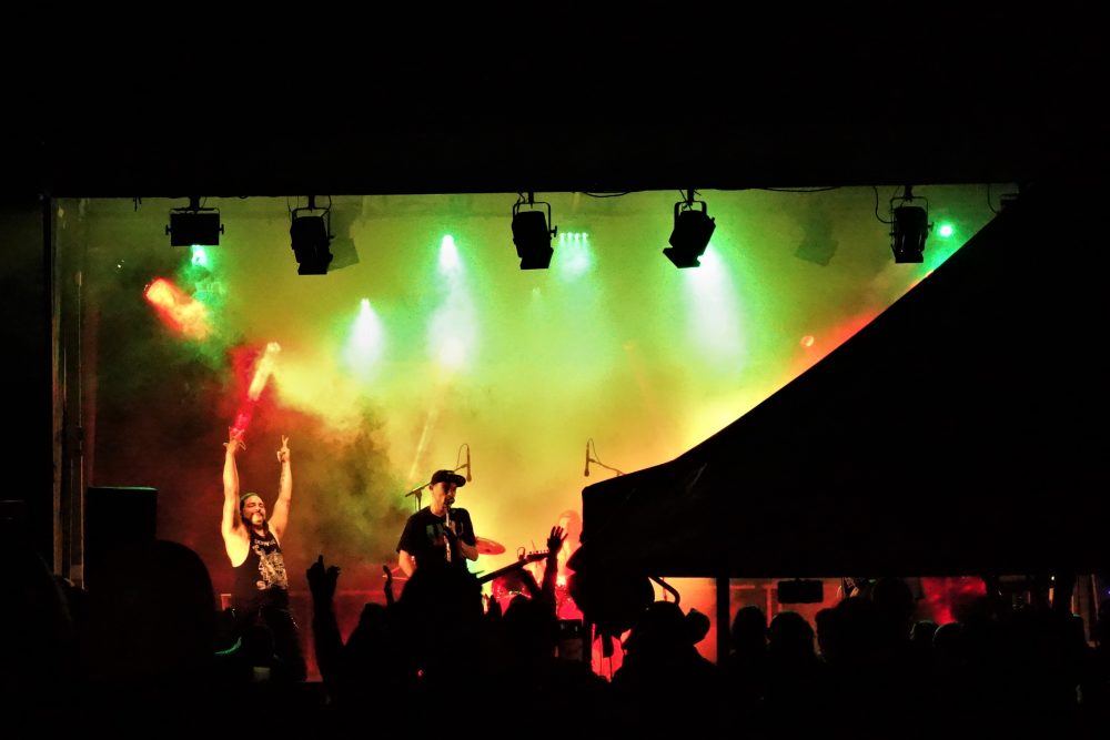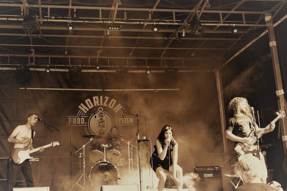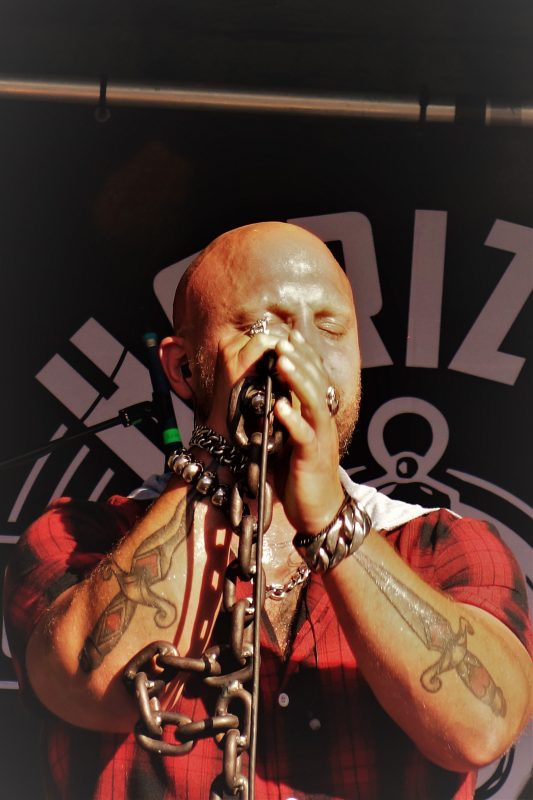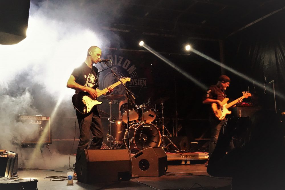 Même si la météo n’a pas été sympa durant les préparatifs, faisant même faire craindre le pire à plusieurs reprises, le soleil et la chaleur ont vaincu les nuages et les averses incessantes à 16h02, pile à l’heure de l‘ouverture des portes ce samedi 3 septembre ! Ô Joie ! Cependant, par prudence au vu des éléments déchaînés dans le ciel sur les heures précédentes, c’est au sein de la Poudrière qu’ont été programmés les 3 premiers concerts.