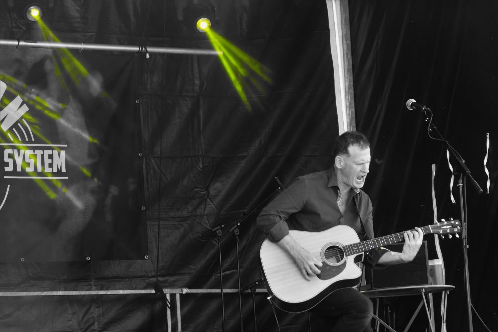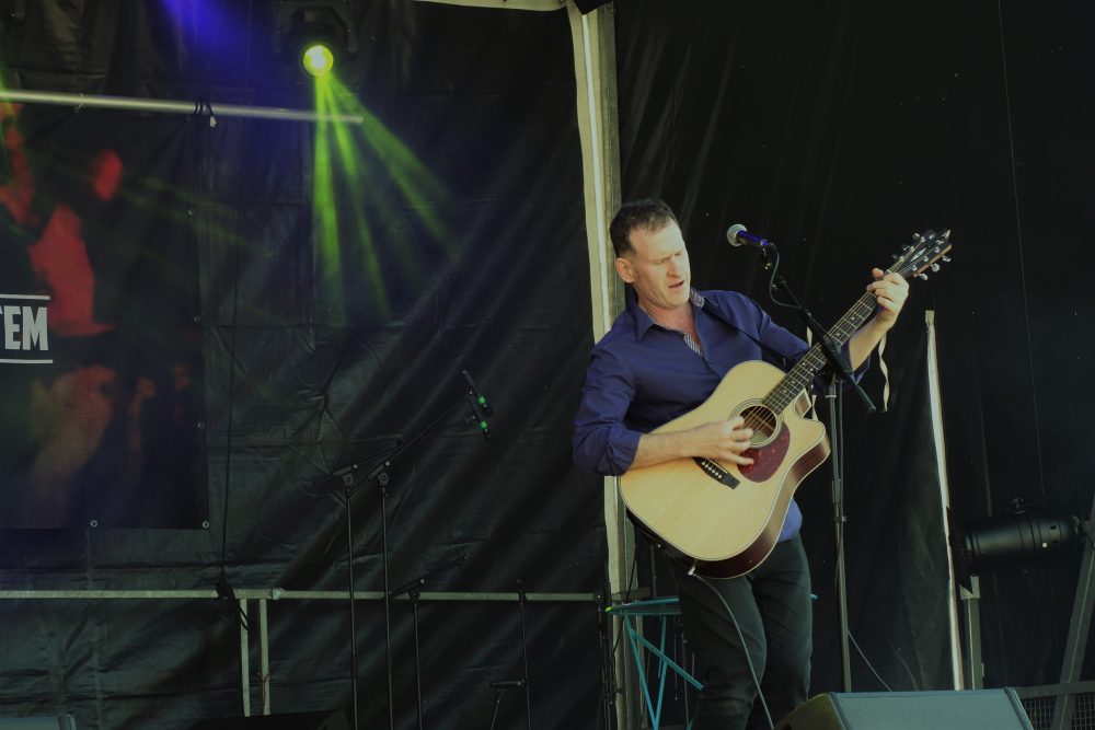 Et le premier invité du dimanche midi, c’était Simon GOLDIN, et sa guitare, et son petit filet de voix… A grands renforts de bonbons au miel, et plein de courage et d’énergie malgré cela, Simon a égayé verres et assiettes, et le public l’a aidé à chanter les passages les plus compliqués. Merci à lui d’avoir assuré le set malgré la quasi-extinction de voix, et d’avoir lancé la session du dimanche aussi généreusement ! C’était Yeah !