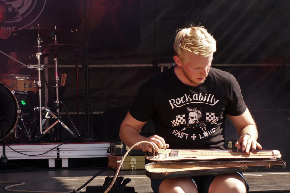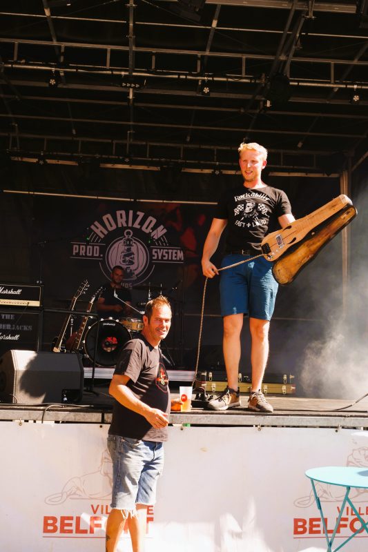 Le temps de débarrasser tables, chaises et couverts, c’est reparti pour les concerts debout ! On a retrouvé avec toujours le même plaisir le duo alsacien des Lumberjacks, talentueux et adorables ! Avec un moment suspendu lorsque Jérôme a testé, en direct live, la dernière née des mains de Cigare Broc Guitare, une Lap-steel incroyable de sonorités et d’ingéniosité. Leur mélange de blues et de country, ponctué fortement de grains de rock’n’roll a bien fait vibrer et bouger le public de nouveau au rendez-vous, sous le soleil généreux.