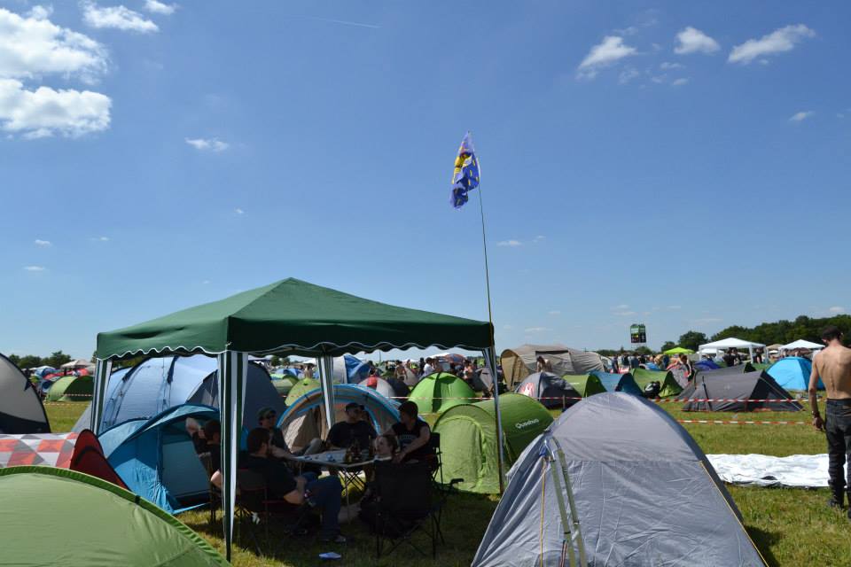Le plus compliqué est de réussir à faire sa petite place pour son immense campement, et oui on retrouve les copains rencontrés l’année dernière en festival. Ils viennent des quatre coins de la France et même d’ailleurs, il est donc inconcevable de ne pas créer un campement géant. Mais la guerre fait rage, certains ont réalisés des carrés de propriété à l’aide de sacs à dos. Je préconise de fouler les terres du camping muni uniquement de vos tentes. Cela permet de pouvoir faire un repérage plus facile des lieux, et évite le déplacement interminable à la recherche d’une terre accueillante avec des sacs hyper lourds. Là au moins, votre camp sera monté en deux temps trois mouvements !!!!