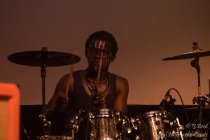 C’est bien dommage, car leur musique est très riche, et fait également preuve d’une très bonne technicité. Le leader, Rock Ahavi, fait remarquablement sonner sa guitare (la seule du groupe). Sweeeping, tapping… Sa palette technique est impressionnante. Le reste de la bande, c’est un chanteur (style rapé le plus souvent), un bassiste, 2 musiciens aux percus (1 batterie, et 1 autre set avec djembé, congas et doubles cloches). Je suis personnellement toujours impressionné par les percussionnistes qui chantent, alors je ne manque pas l’occasion de le mentionner quand j’en vois. Ici, c’est tout une parte des backings vocals qui étaient superbement assuré par un des 2 musicos derrière ses congas.