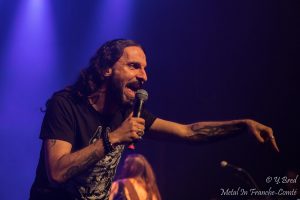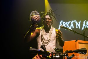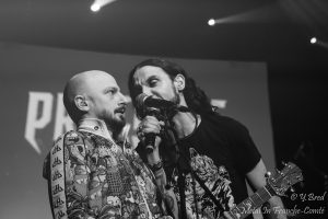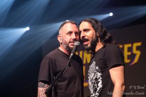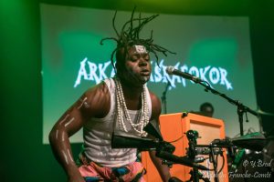 Le temps de préparation du groupe suivant aura été assez court. J’ai été particulièrement bluffé par les balances. Le régisseur demandait juste une note sur la guitare. « C’est bon, on est à niveau ». Un coup à la grosse caisse. « C’est bon, on est à niveau » … Comprenez que les balances et tests avaient été faits plus tôt dans la journée. On ne remettait là les potas qu’aux endroit prédéfinis. Mais ce fut quand même très court, et très efficace, car le son des ARKA’N ASRAFOKOR aura été très clair et très bien dosé.