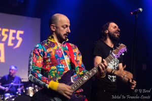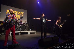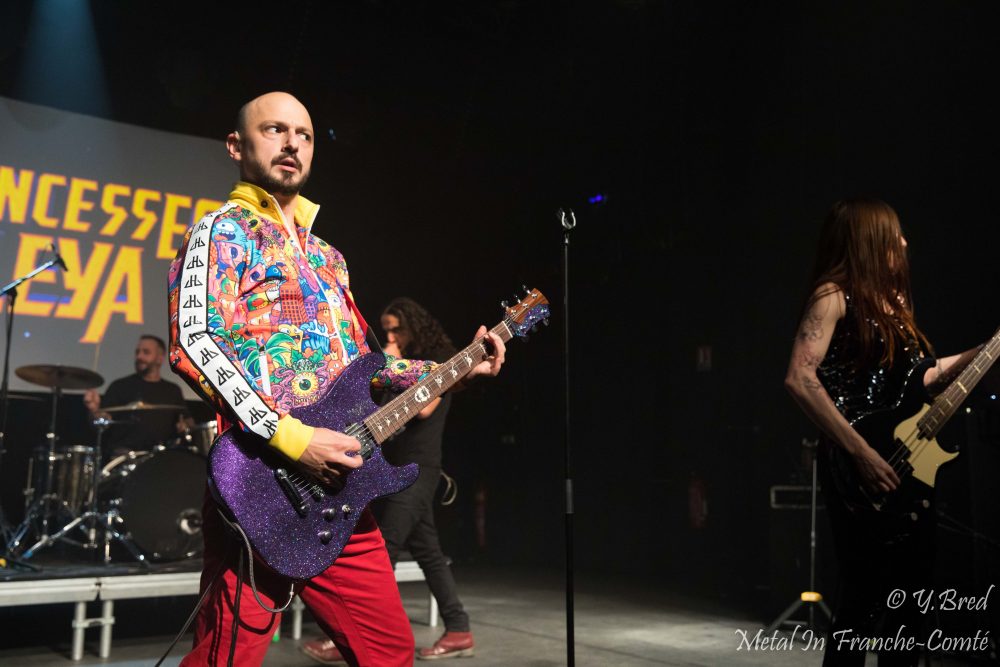 PRINCESSES LEYA aura été un moment très coloré, dans ses textes, mais aussi dans sa mise en scène, avec des paillettes (notamment sur la superbe guitare MAESTRIA de Schoumsky), de l’action (quand par exemple Dedo plonge dans la foule depuis la scène), et de l’amour (avec un émouvant Wall of « Love » du public) …