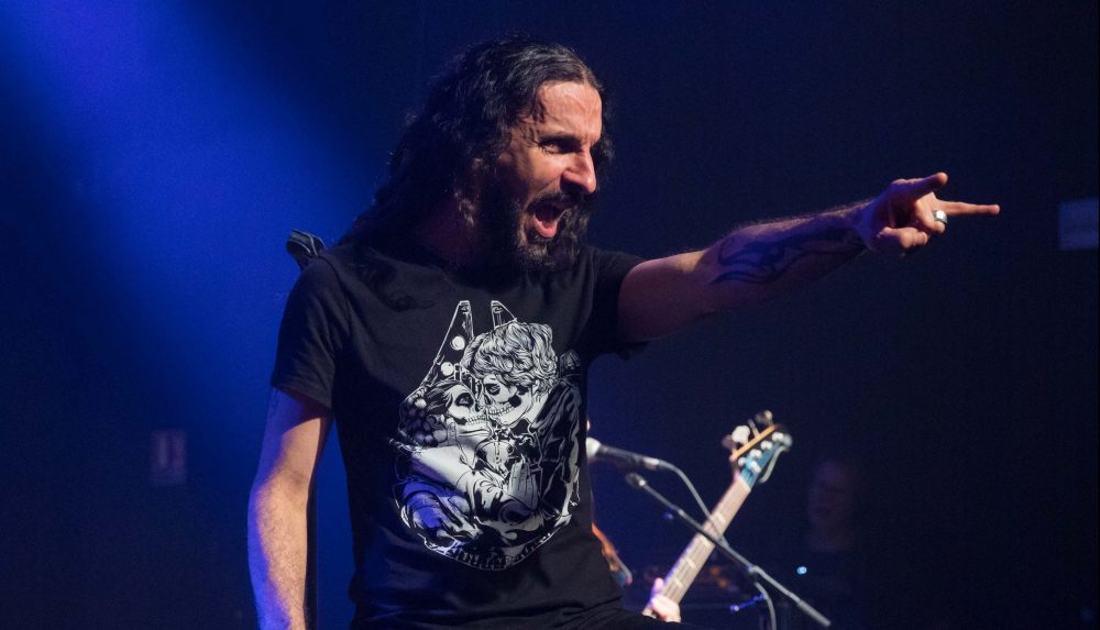 Djembé, congas, shekéré et doubles cloches sur la gauche de la scène… On sait qu’on va avoir des percus aux sonorités inhabituelles pour nos oreilles de métalleux lambdas. Enceinte Orange posée sur un de ses côtés (?), guitare 7 cordes et basse 6 cordes… Ce sont là quelques indices d’une musique qui peut être bien violente, vous savez, du genre où on marque le rythme avec un son bien grave. Le chanteur principal est pieds nus, à la BENIGHTED… (Bon, là, je ne suis pas sûr que ce soit forcément gage de groupe violent).