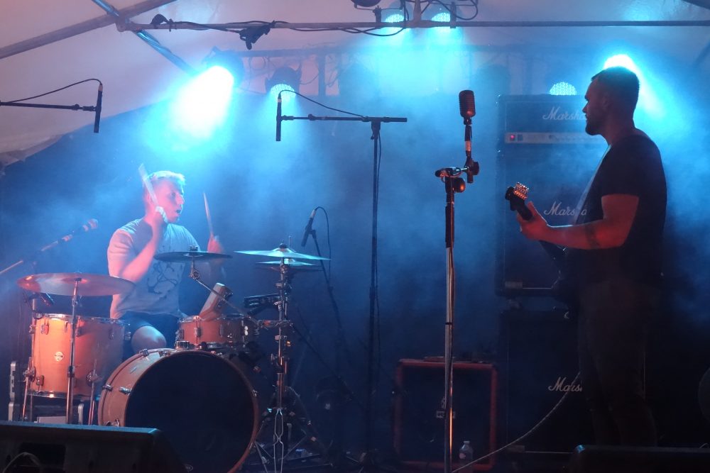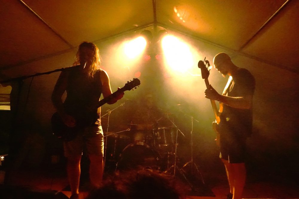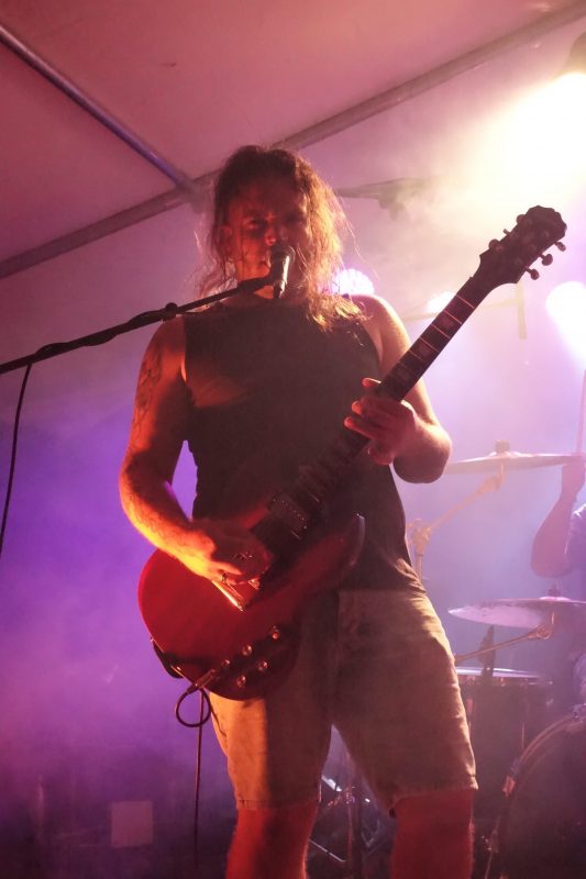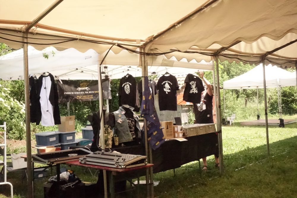 Quatre groupes invités, accueillis sur une scène agrandie, sous un chapiteau qui avait doublé de surface, et toujours le talent technique d’Horizon Prod System (HPS from Ronchamp) pour le son et les lights ! Des conditions incroyables pour cet évènement, et un public venu en masse tout au long de ce samedi (plus de 500 entrées comptabilisées, dont un pic à quasi 300 ! via une entrée à prix libre). Laurent nous a même offert un emplacement pour le stand de merch’ Metal in Franche-Comté, ce qui nous a permis de vous rencontrer une fois de plus « en vrai », merci à vous tous qui êtes venus nous voir, échanger, participer à la tombola et soutenir nos actions !