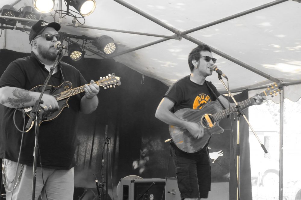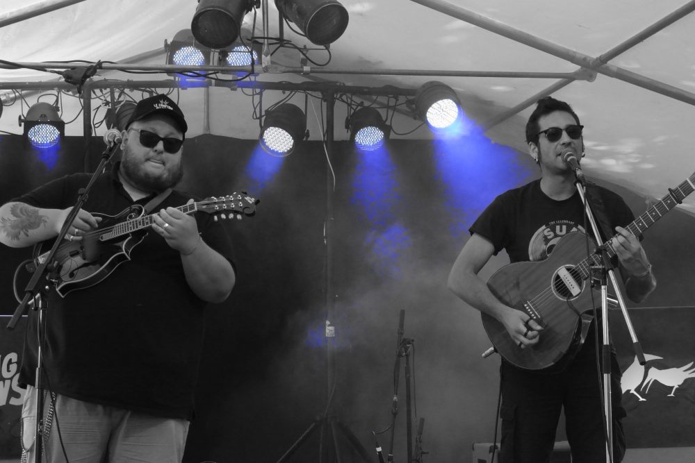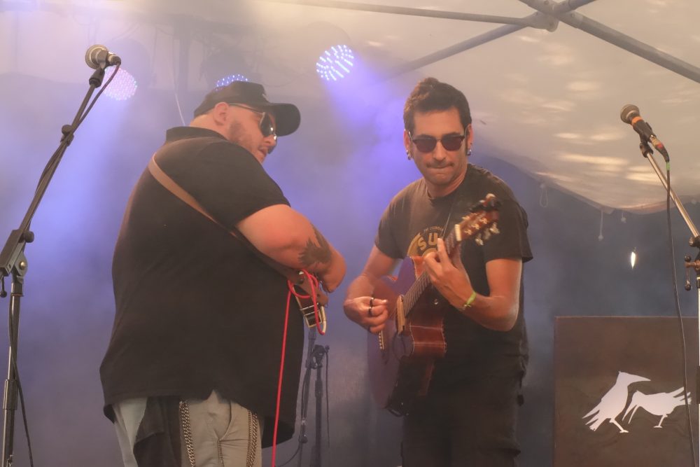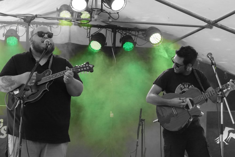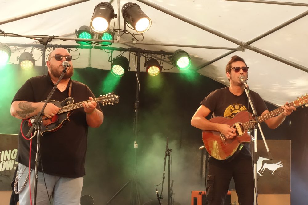 A 19h, c’est le duo de folk énergique Mocking Crows qui se présente sur scène. Avec Rémi à la mandoline et Jordan à la guitare, on passe dans un registre mixant étonnamment folk, punk et bluegrass, à base de compositions et de reprises revisitées, faisat le grand écart entre System of a Down et Taylor Swift, via The Clash, et on aime ça ! Leur complicité évidente et de longue date électrise ce set réjouissant, devant un public atteignant un pic de 250 personnes ! Woooow 🙂