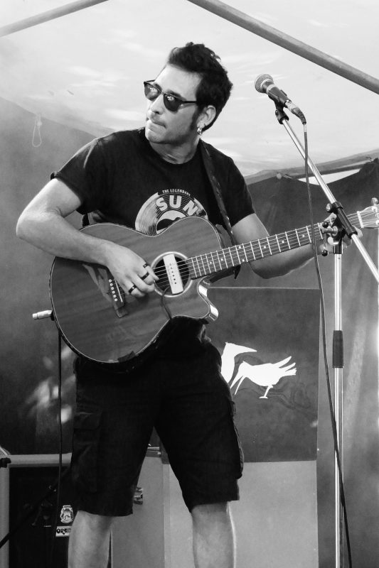 C’est dans son graaaand jardin que Laurent GIRARDCLOS, devenu artisan luthier inventif, suite à une reconversion professionnelle, a convié amis, voisins, potes, famille, musiciens du coin et de plus loin, mélomanes de tout horizon, et curieux, à la découverte de l’atelier Cigare Broc Guitare.