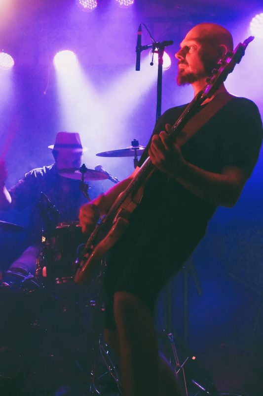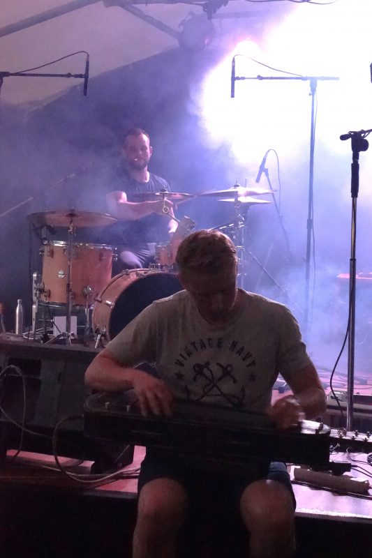 De la country blues survoltée avec Jérôme à la batterie (mais aussi à la black Lap-Steel guitar made by Cigare Broc Guitare [who else !], toujours un grand moment dont on ne se lasse pas !) et Lucas à la guitare. L’occasion pour eux de reprendre pied sur scène après de longs mois d’attente, et le plaisir était là, sous des lights enfin en action avec la pénombre naissante Boooon, ça !!