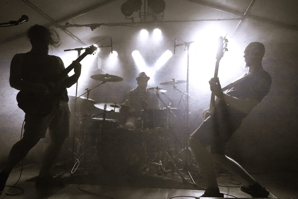 Devant des spectateurs toujours motivés et impatients, c’est enfin au tour du dernier groupe de la soirée de s’exprimer. A 23 h tapantes (Kevin veille !), c’est le phénomène Wootz, from Montbéliard, qui grimpe sur scène. Malgré très peu de dates jusqu’alors, le trio, né de la rencontre de 2 Fre3Bastards (Greg à la batterie et Mick à la basse, complices de longue date) et de Jeff (ouiii, encore lui :-p) a déjà fait parlé de lui, avec un premier EP déjà sorti et plus que réussi. On passe là dans un registre qu’ils qualifient de stoner/desert rock, c’est sombre, dense, puissant, encore plus marquant en live qu’en enregistrement, car la maîtrise scènique de ces trois gaillards, qui n’en sont pas à leur premier concert, loin de là, ne peut pas décevoir ! Ca envoie ! Avec des reprises de Black Sabbath et autre Motorhead par-là dessus, et 2 rappels jusqu’à la dernière minute possible, Wootz a tout donné face à un public enthousiaste qui a bien dû se résoudre à reposer ses oreilles enfin. Un groupe qu’on suit depuis son lancement et qu’on vous encourage à aller découvrir sur scène si ce n’est pas déjà fait !