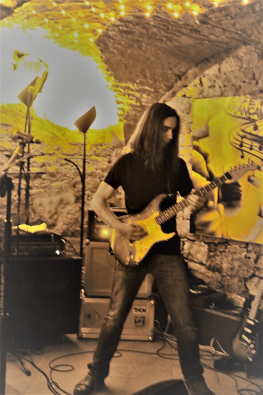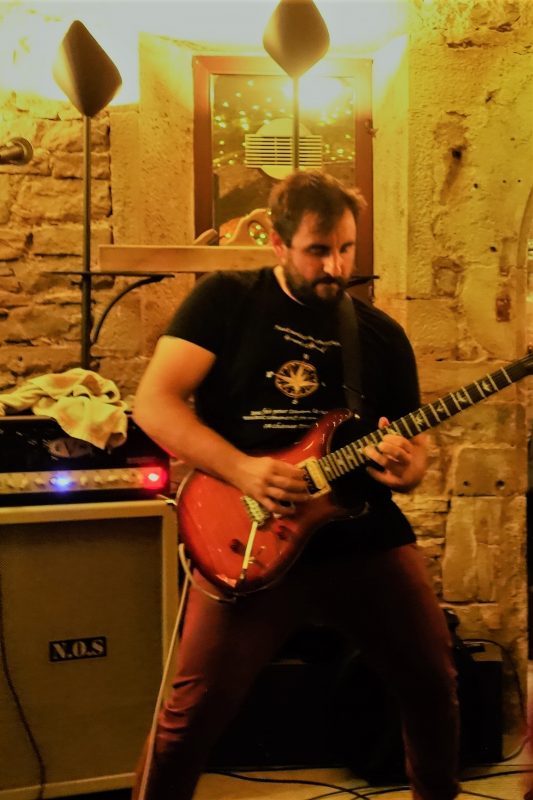 C’est donc dans un Café Français bien chauffé que SPHERES fait son entrée, tout droit venu de Paris pour explorer durant 3 jours la Franche-Comté. Si vous ne connaissez pas SPHERES, vous avez tort ! mais il n’est pas trop tard pour vous y intéresser ! Formé complètement en 2018 autour du frontman Jonathan LINO, SPHERES concocte un metal progressif, mis en valeur dans son 1er album, « Iono », sorti en mars 2019. La conjecture mondiale a tellement différé les concerts que c’est finalement essentiellement avec des titres du déjà futur album que le quartet parisien a concocté son set franc-comtois. Pas mal de découvertes au programme donc, pour ceux qui comme moi avaient eu le temps d’écouter de long en large la première galette, et avec donc un grain de déception de ne pas avoir pu entendre en live plus de titres déjà « connus ». Mais un vrai plaisir d’avoir enfin pu faire connaissance avec les membres de ce groupe que je vous recommande de suivre. Des titres maîtrisés, où le registre vocal de Jonathan peut s’exprimer totalement, en passant aisément du chant clair, à l’éraillé, au growl, tout en donnant la part belle à des passages instrumentaux et à des solos convaincants, voire éclatants.
