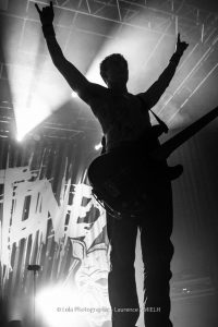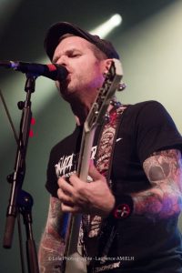 Arrive le groupe que j’avoue avoir longtemps sous estimé, Tagada Jones !! Pendant des années, j’ai mis de coté les Rennais sans trop savoir pourquoi. Est ce que musicalement j’avais un apriori ? est ce le concept et l’engagement ? Franchement je n’en sais rien mais ce soir, je décide de me concentrer sur ce concert qui va laisser des traces !! Coté musique, on retrouve le Punk Rock engagé d’un Parabellum qui lorgne parfois vers un Metal plus lourd. N’étant pas encore un fan pur et dur, je ne connais pas toutes les chansons mais je peux largement dire celle qui m’ont scotché ! « Vendredi 13 » m’a pris aux tripes, les attentats ayant laissé en moi une putain de cicatrice (moral car je n’y étais pas) et cet hommage est sincère de la part de Tagada Jones ! « La Peste et Le Cholera » fait aussi son effet, une cinglante baffe sur le conflit Syrien et l’exile de ses habitants » ! Mais sans conteste, « Mort aux cons » est le titre de la soirée, il fait chanté, il est engagé, il m’a définitivement fait plongé dans ce groupe !! Alors un seul mot MERCI !