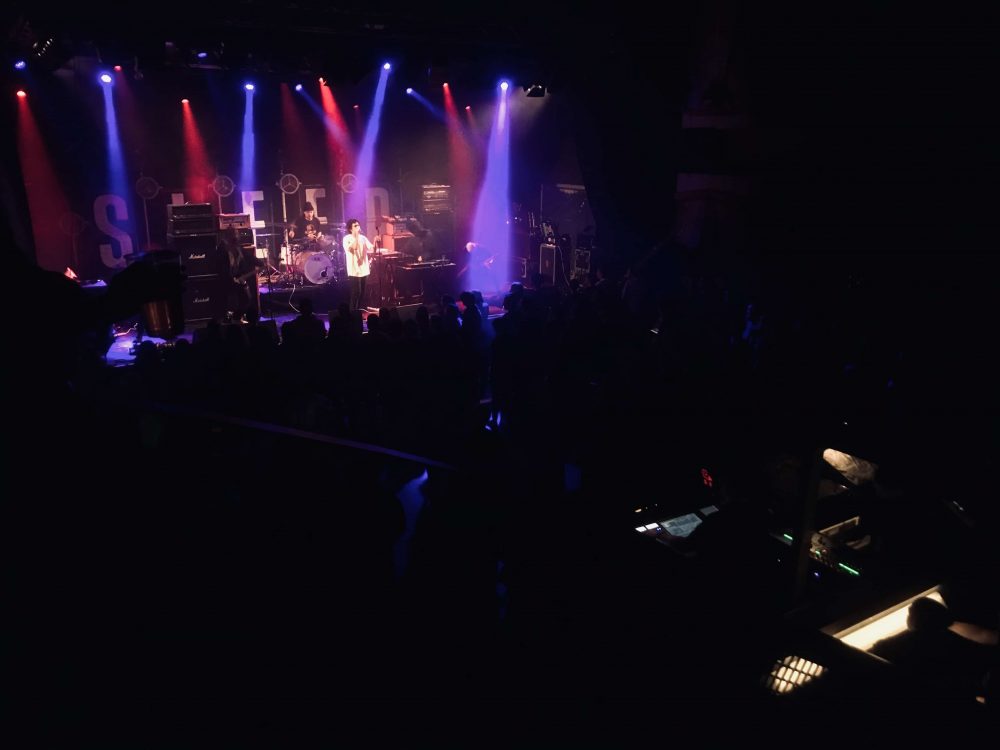 Vraiment, les salles suisses sont chouettes, ça a de la gueule, du style, on se croirait investir de l’Urbex réhabilité, mais juste pas assez pour garder le côté Grunge. Bon, un mardi, les concerts commencent tôt (18h30), on loupe le début de Vein. Une bière, un tour au merch, et hop, direction le pit.